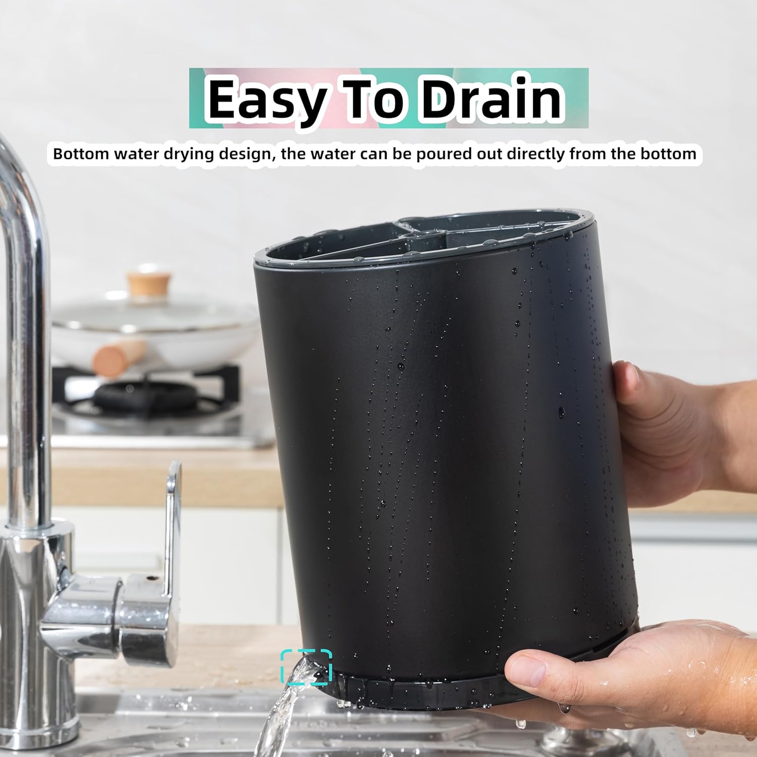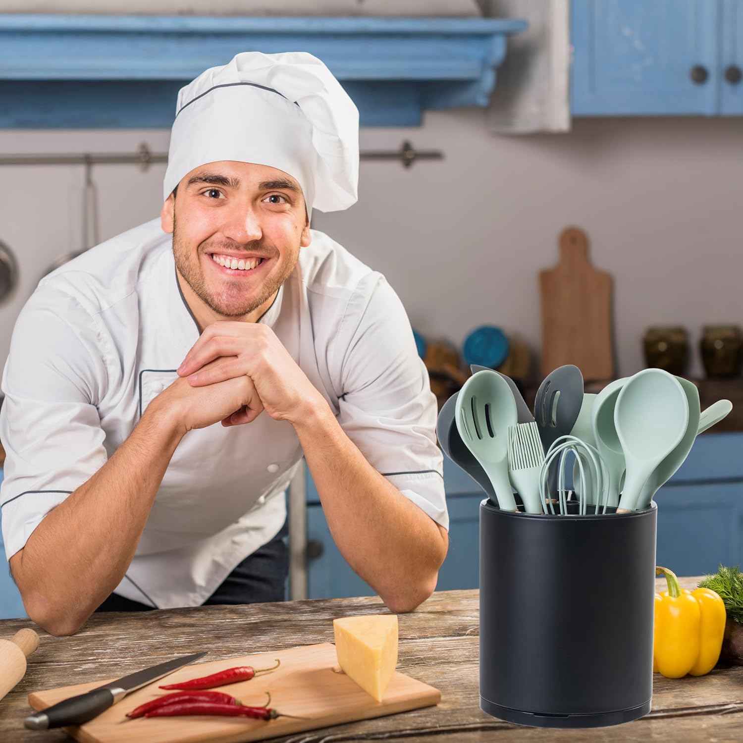 • 360° Rotating Utensil Holder: The 360° utensil caddy with rotating design makes it cooking tools are easy to use and also a great stress relieving companion in the kitchen.The large base of the utensil caddy on the kitchen countertop is equipped with 4 non-slip rubber pieces to secure utensils and prevent scratching the kitchen surface. It provides a simple and efficient storage solution for all your kitchen utensils.