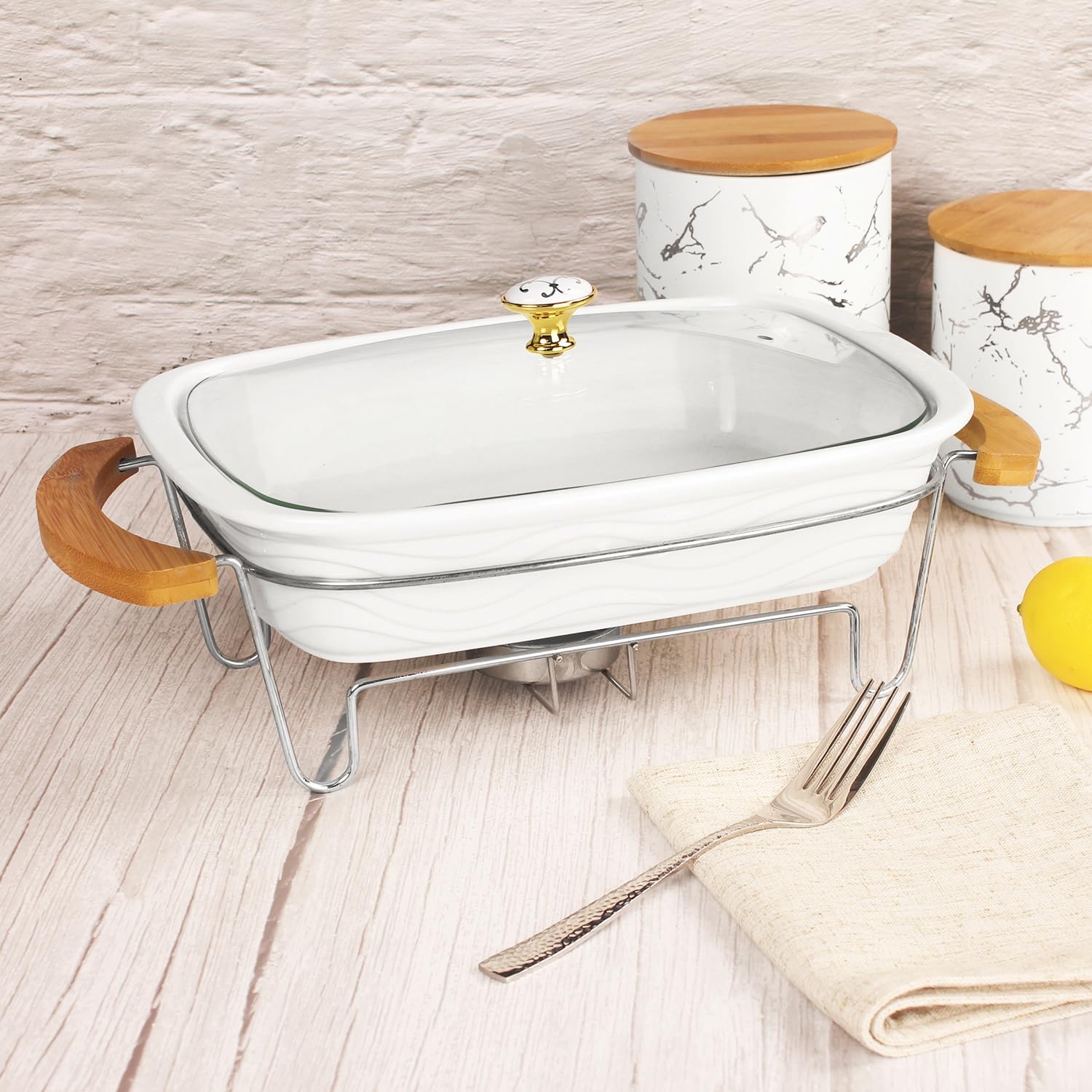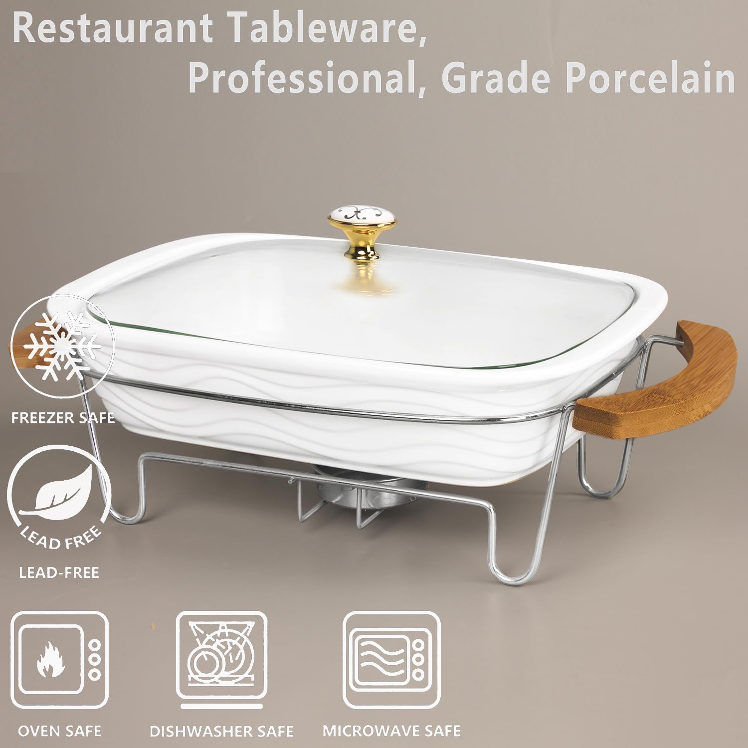 • Multipurpose Baking Dish Set – size 17.3" x 9.2" Inch,capacity 2.2 Quarts, Our ceramic baking dish pans are ideal for all your favorite foods, Add color to your event, compared to stainless steel food trays, these vintage palace style porcelain plates have a sophisticated shine thanks to their white and gold plating.