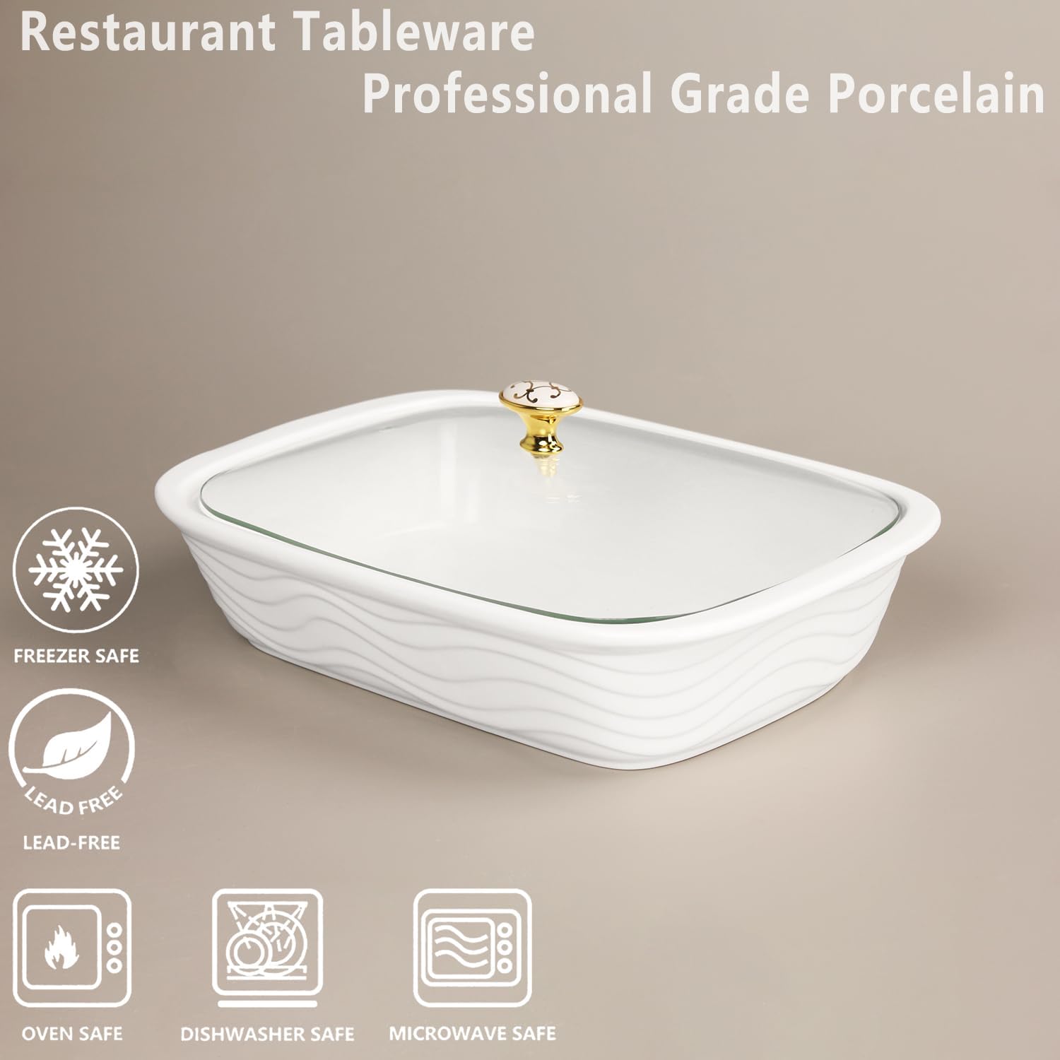 • Multipurpose Baking Dish Set – size 13.2" x 9.2" Inch,capacity 2.2 Quarts, Our ceramic baking dish pans are ideal for all your favorite foods, Add color to your event, compared to stainless steel food trays, these vintage palace style porcelain plates have a sophisticated shine thanks to their white and gold plating.