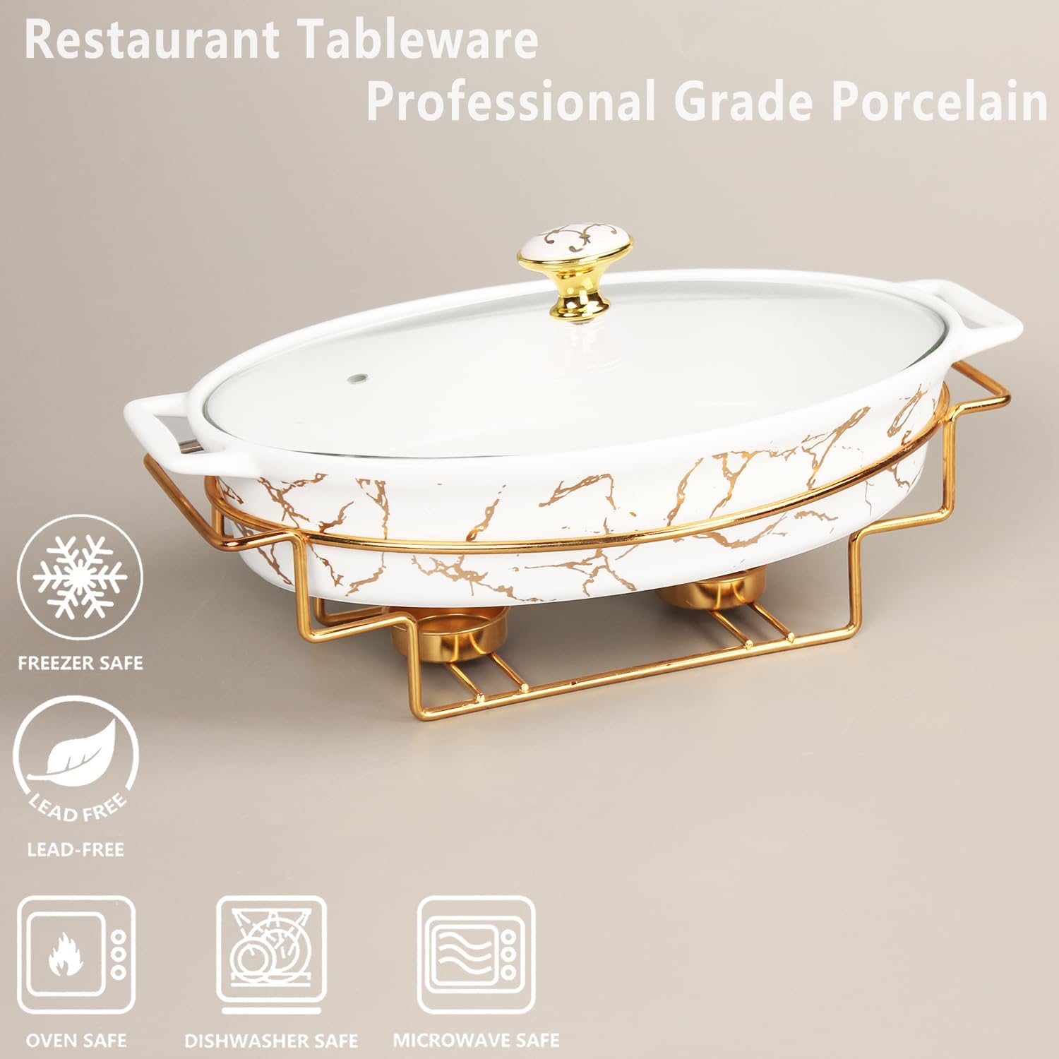• Multipurpose Baking Dish Set – size 14.4" x 8.9" Inch,capacity 1.7 Quarts, Our ceramic baking dish pans are ideal for all your favorite foods, Add color to your event, compared to stainless steel food trays, these vintage palace style porcelain plates have a sophisticated shine thanks to their white and gold plating.