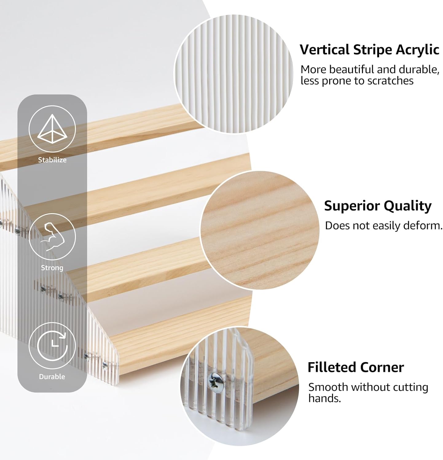 • Elegant & Sturdy: Risers display stands constructed from high-quality pine wood and corrugated acrylic, making it both aesthetically pleasing and fashionable, as well as durable and resistant to deformation, the spice shelf is a beautiful and robust addition to any space