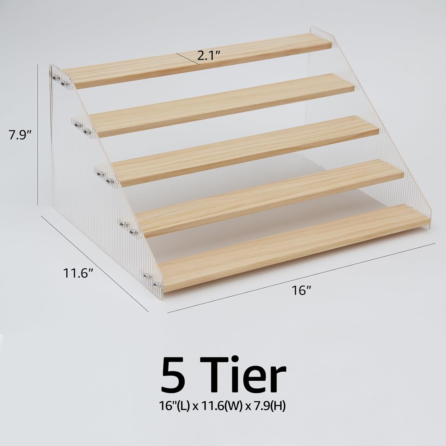 nianfeng Tiered Spice Rack, 5-Tier Spice Pantry Kitchen Cabinet Organizer, 16-Inch, Natural Wood Acrylic Stair Riser Stand, Countertop Seasoning Shelf