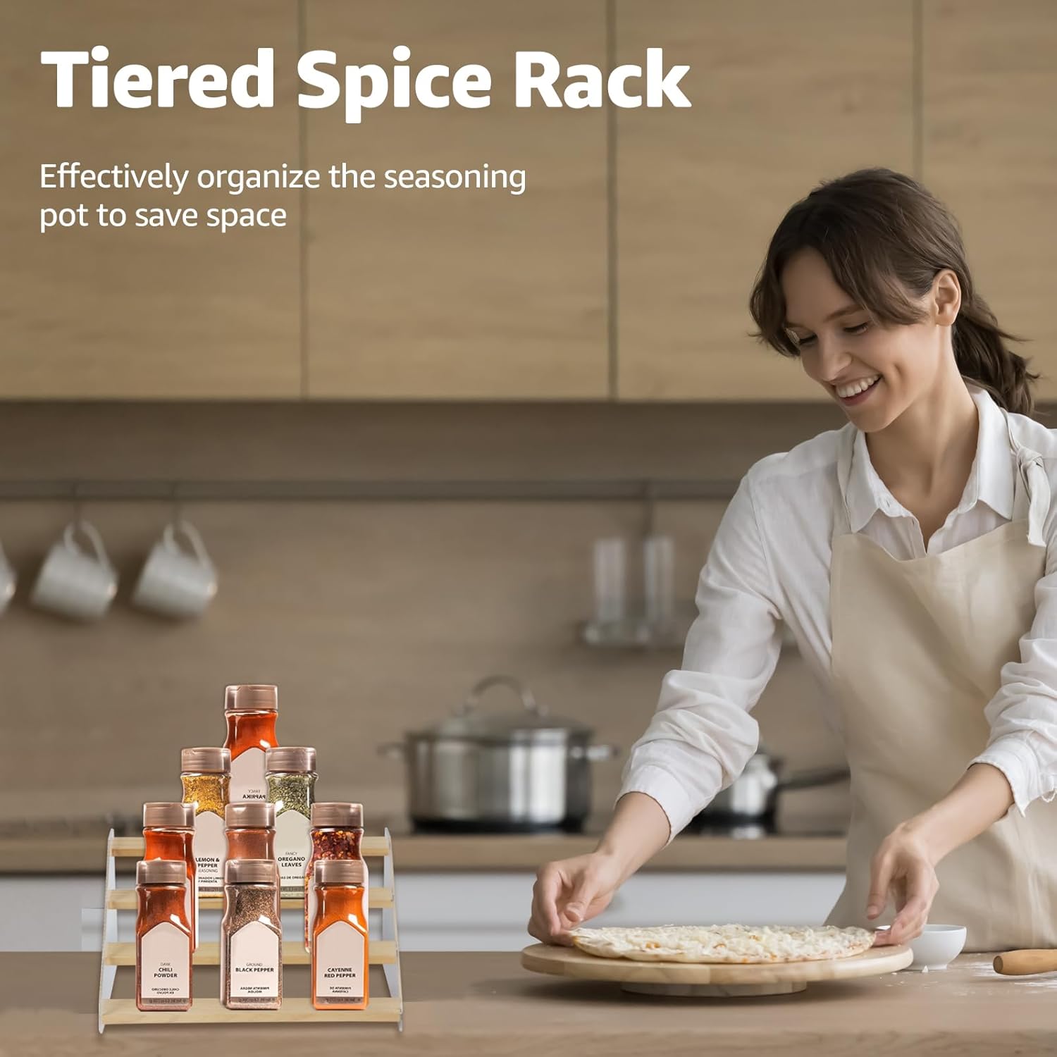 • What You Get: A simple-to-install tiered spice rack. Keep your spices visible and your cooking organized.