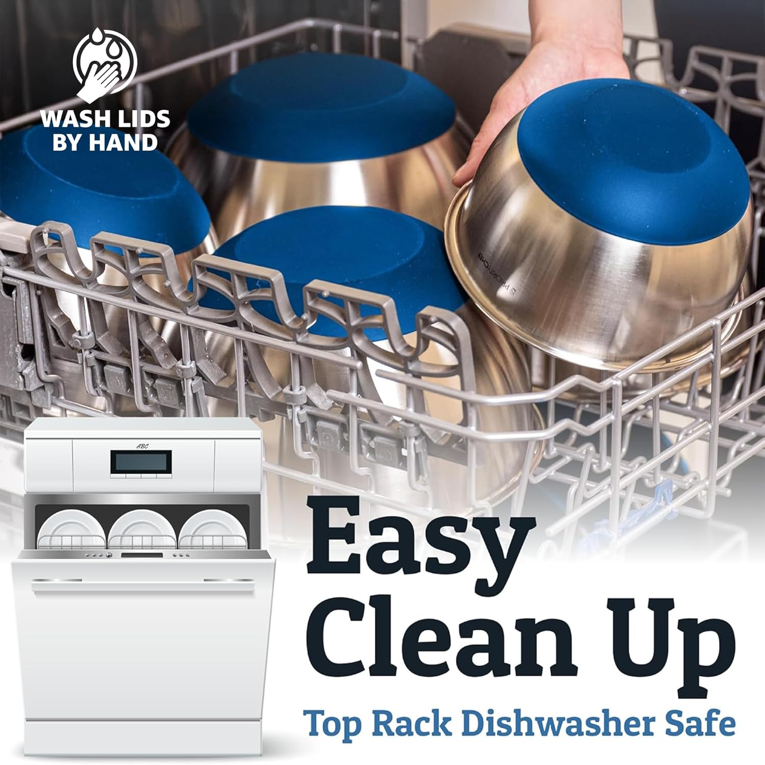 • Comprehensive Size Variety: Elevate your culinary skills with our complete set of 5 stainless steel mixing bowls with lids set, ranging in size from 1.5 to 5 quarts. Whatever the task you'll find the perfect size for every task.