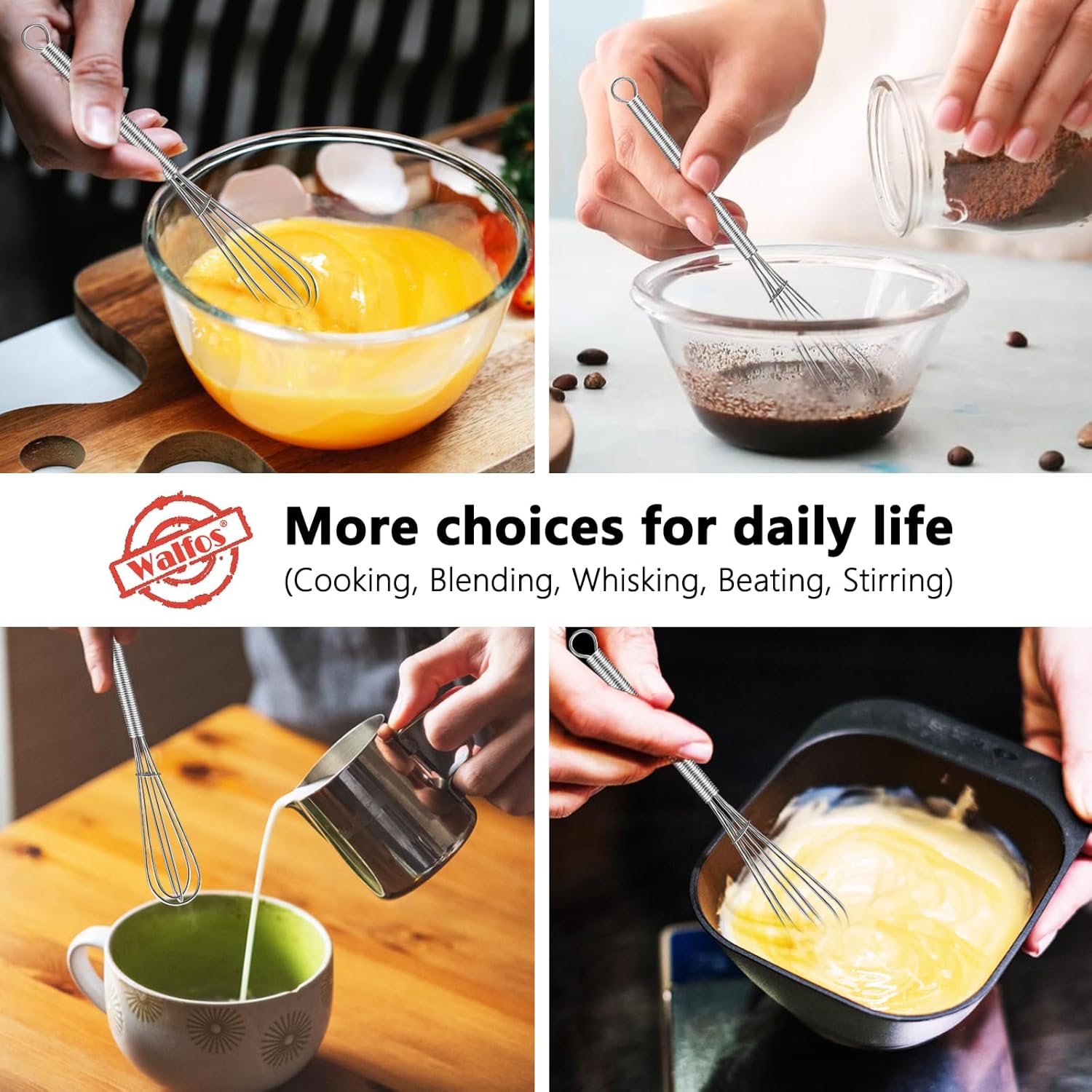 Walfos Mini Whisk,304 Anti-Rust Small whisk,Sturdy Stainless Steel Wire Tiny Whisks 6+7+8in,Ideal for mixing individual eggs, jams, spices and other small portion ingredients.(3pcs)