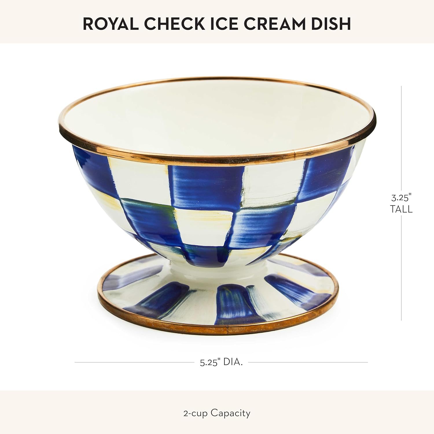 MACKENZIE-CHILDS Enamel Ice Cream Bowl, Serving Bowls for Entertaining, 2-Cup Capacity, Blue-and-White Royal Check