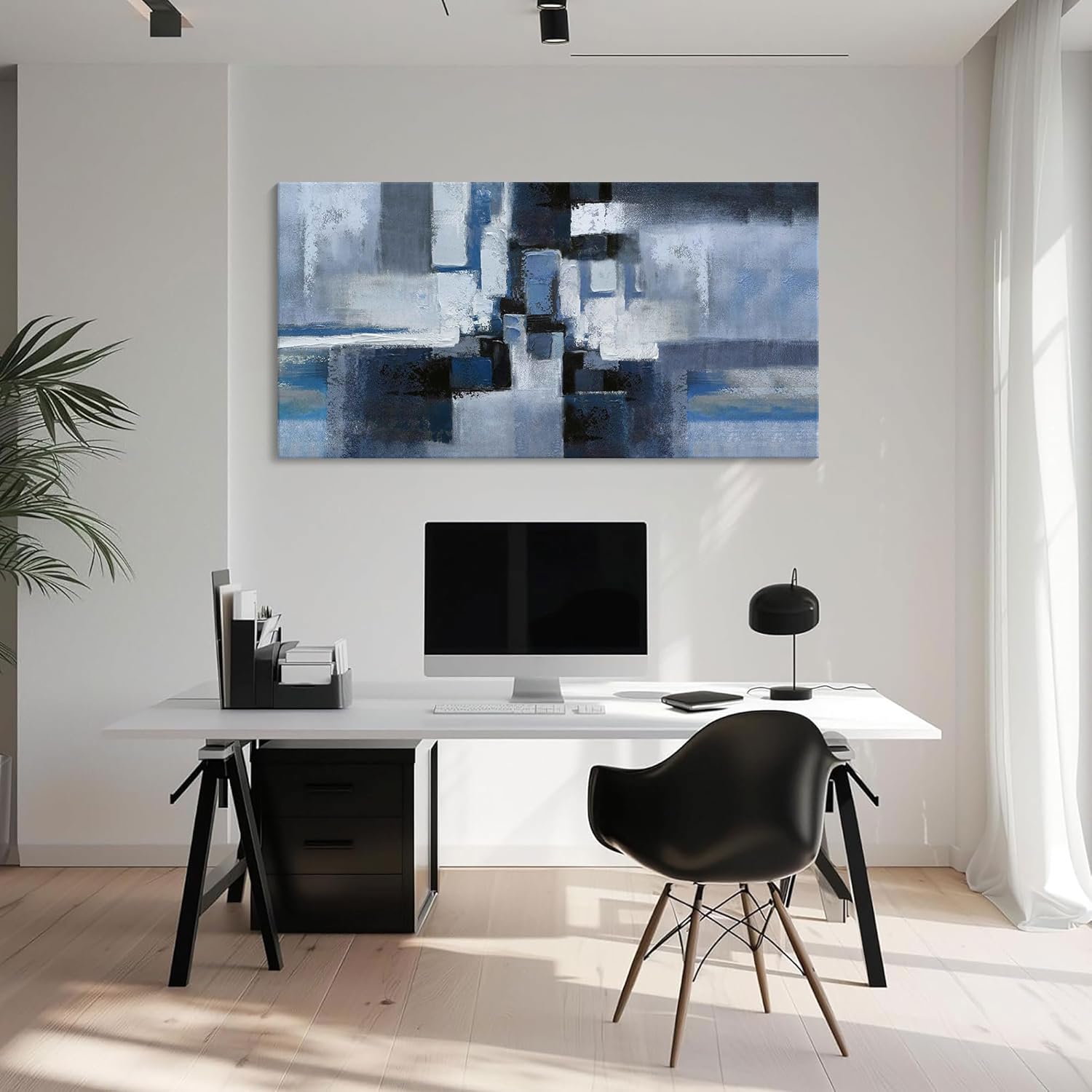 • Abstract Wall Art Canvas Size:24x48 inches,where the cityscape transforms into an abstract symphony of blues.