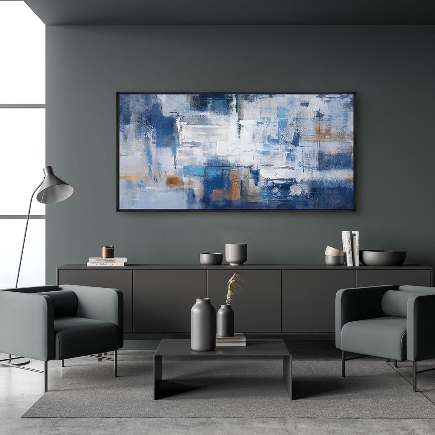 KLAKLA Navy Blue Abstract Canvas Wall Art - Black Frame Artwork Picture Living Room Wall Decor Modern Paintings Large Wall Art for Bedroom Home Decoration