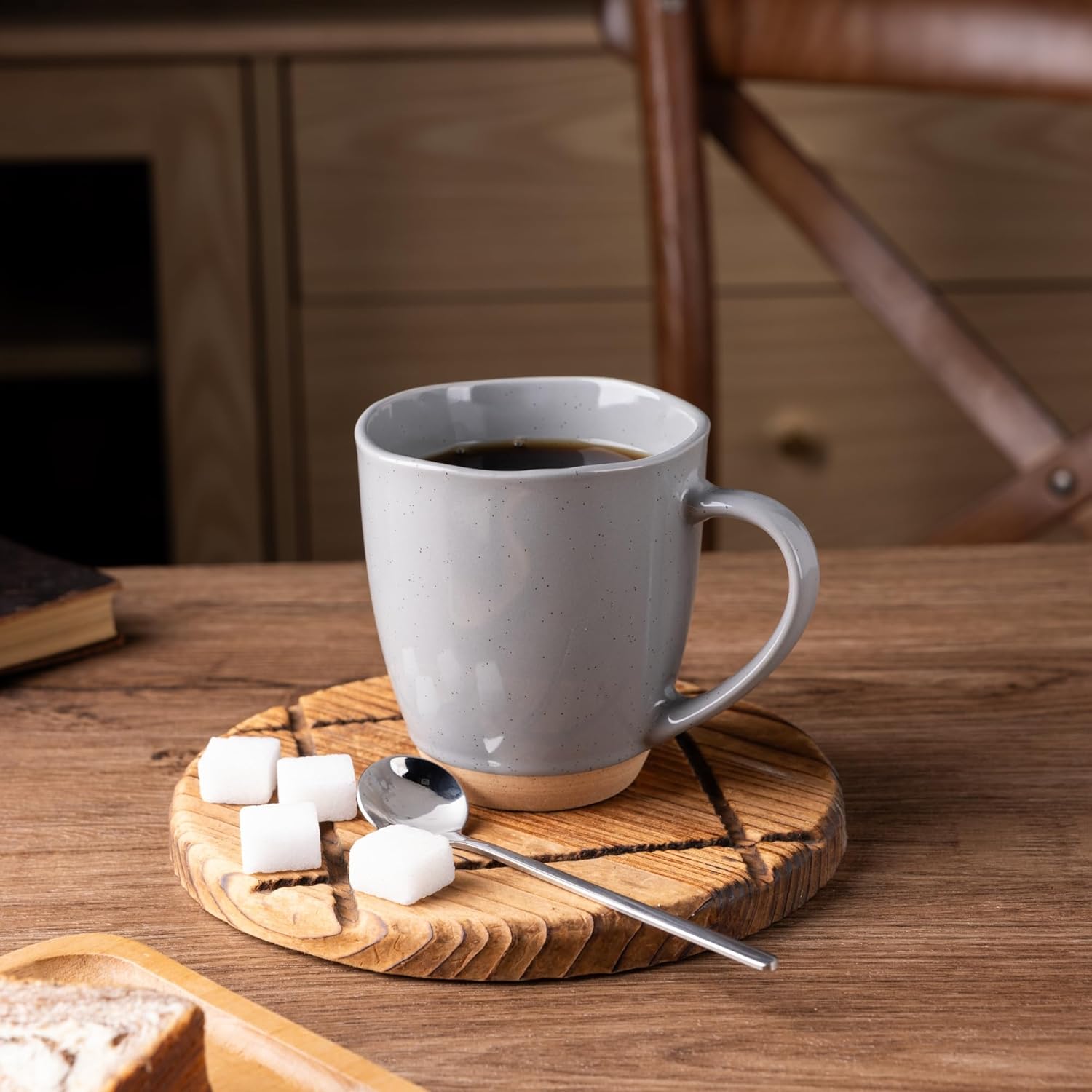 AmorArc 12oz Ceramic Coffee Mugs set of 6, Stylish Coffee Mugs with Rustic Terracotta Underside for Latte/Cappuccino/Milk/Cocoa, Dishwasher&Microwave Safe, Gray