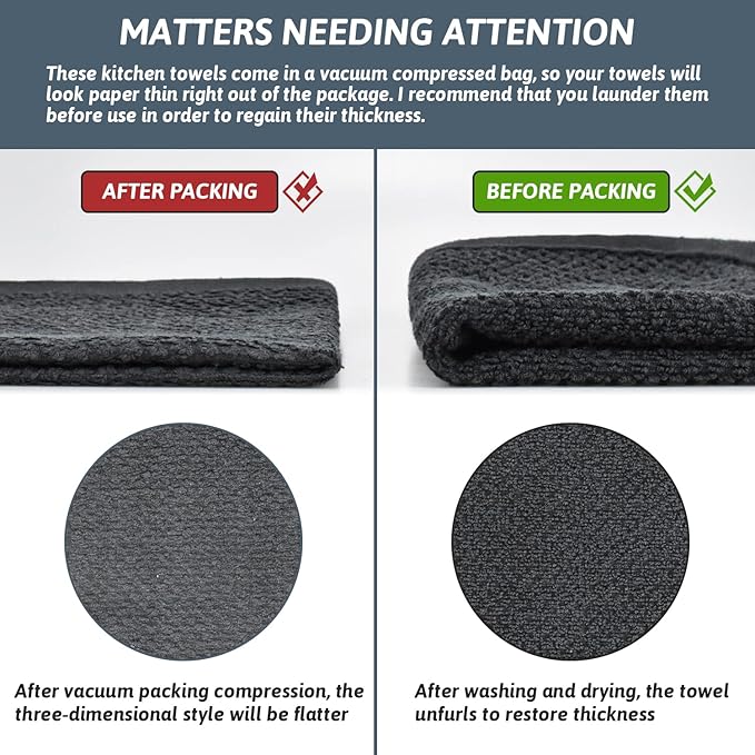 • MULTIFUNCTIONAL - Our dish towels perfect thickness, Can be used as dish rag,cleaning cloth,kitchen towels,dish towels for drying dishes and cleaning kitchen jobs, It’s so easy to remove dust, dirt, stain, grease. They are helping you handle housework quickly and efficiently.