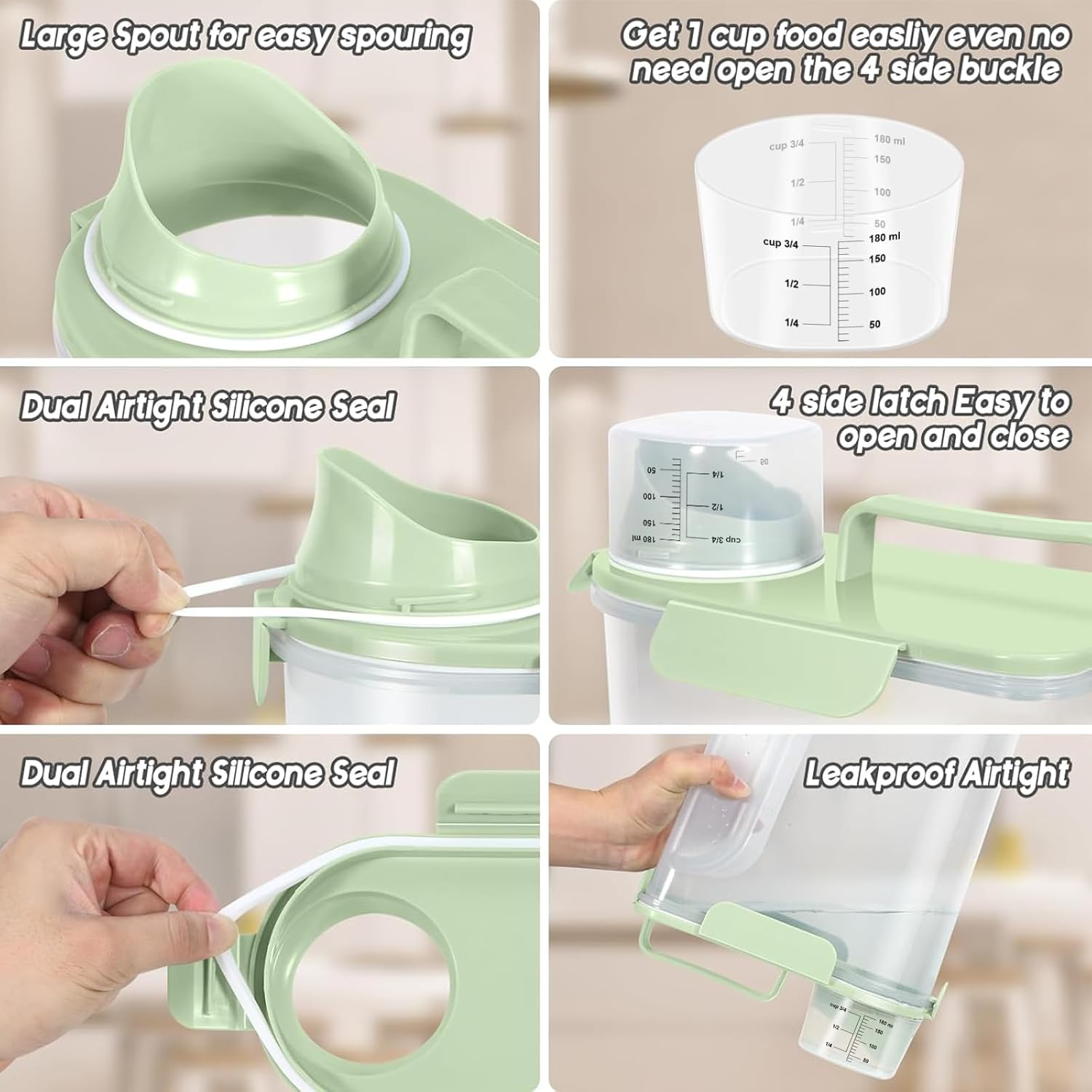 • WHAT YOU GET ? The dog food storage container comes with a 1-pack airtight pet food storage container with a clear measuring cup and an upgraded large spout for easy pouring of pet food at any time. This dog food storage containers can be a gift The perfect gift for any home.