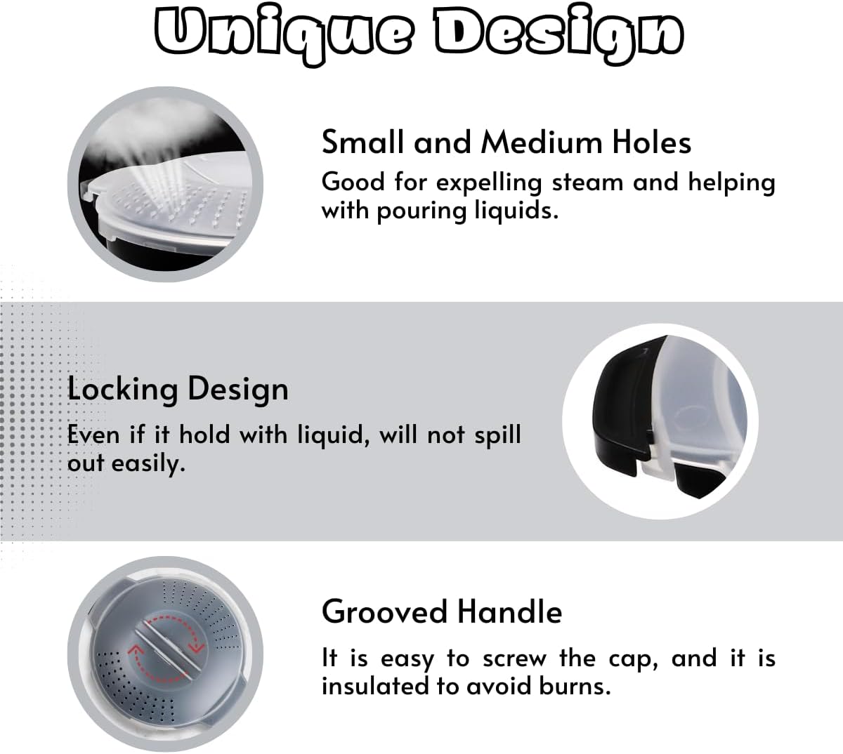 • [Unique Design] - The capacity of 2 Quarts is the perfect size for family meals. The inner walls of both sides are respectively marked with scales for easy measurement. The lid of our microwave steamer has a locking design, even if it holds liquid, will not spill out easily. And with the grooved handle, it's easy to screw the lid, and it is insulated to avoid burns. The Locking lid of the microwave veggie steamer has small and medium holes, which can ensure that the humidity in the cooker is mo