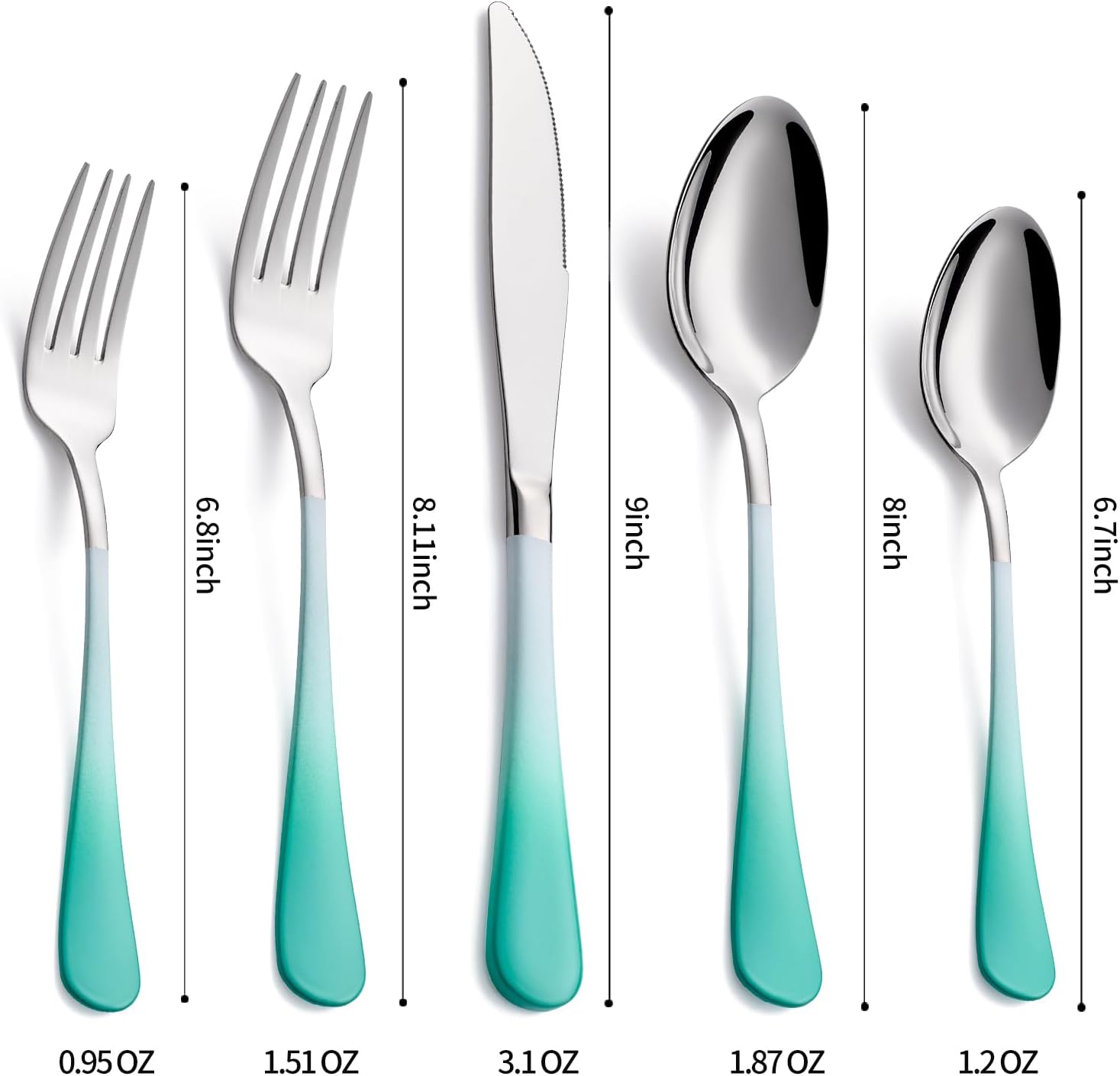 • 【Vibrant Colors】: Elevate your dining experience with this 20-piece stainless steel flatware set featuring eye-catching colored handles.