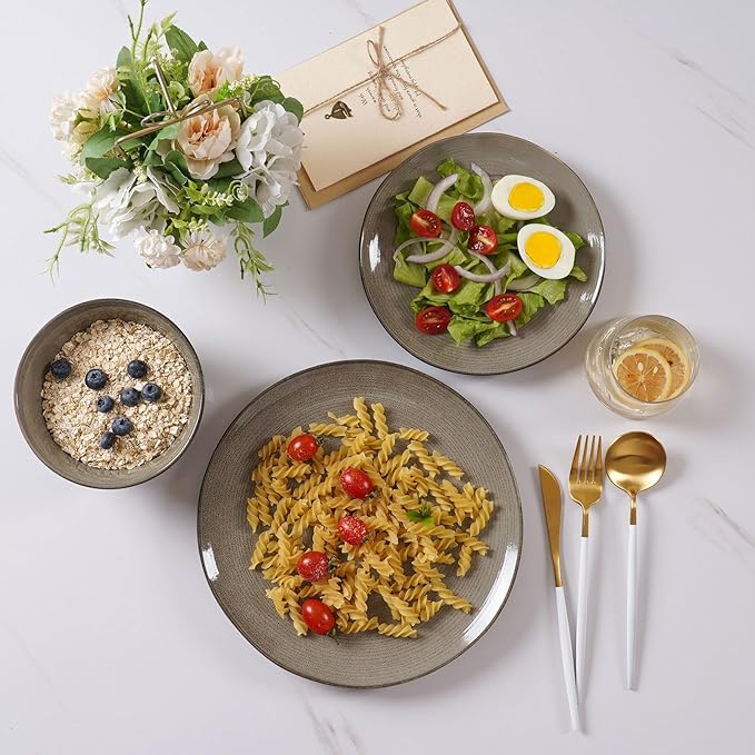 • EVERYDAY DINNERWARE: Our glaze is fired at high temperatures, resulting in a hard and smooth surface. This makes the dish set durable, scratch-resistant, and easy to clean in the dishwasher or to reheat in the microwave