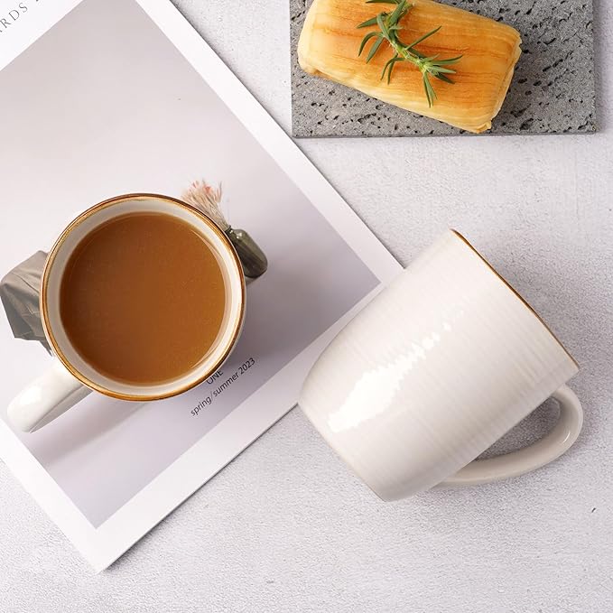 famiware Tempus Coffee Mugs Set of 4, 14 oz Cup Set, Stoneware Mugs with Handle for Coffee, Tea, Cocoa, Milk, Cappuccino, Microwave Safe - Antique White