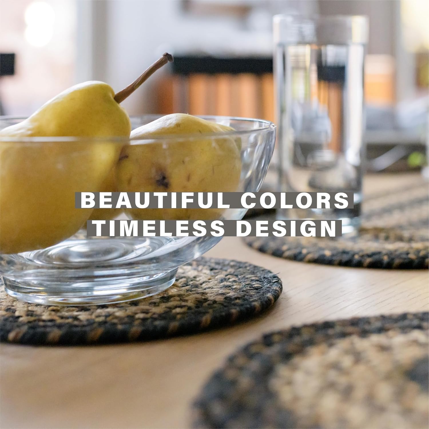 Homespice Kilimanjaro Jute Braided Trivets for Table, Warm Primitive Decor, Set of 3, Black and Tan 8" Round Heat Resistant Mats - Rich Colors, Easy to Clean, Durable and Protects Furniture