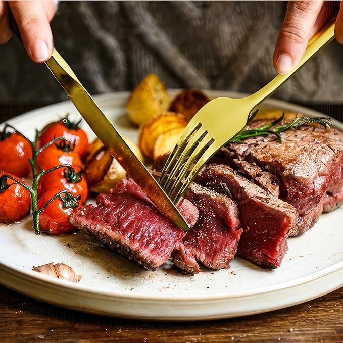 • HIGHLY MIRROR POLISHM - Highly mirror polished creates a smooth surface for this silverware set, no rough edges, and always keep shining. Simple classic design make your flatware set elegant, exquisite and attractive, can perfectly match your dinnerware set, enhance your dining experience with every meal. Gift for housewarming, wedding, Mother's Day