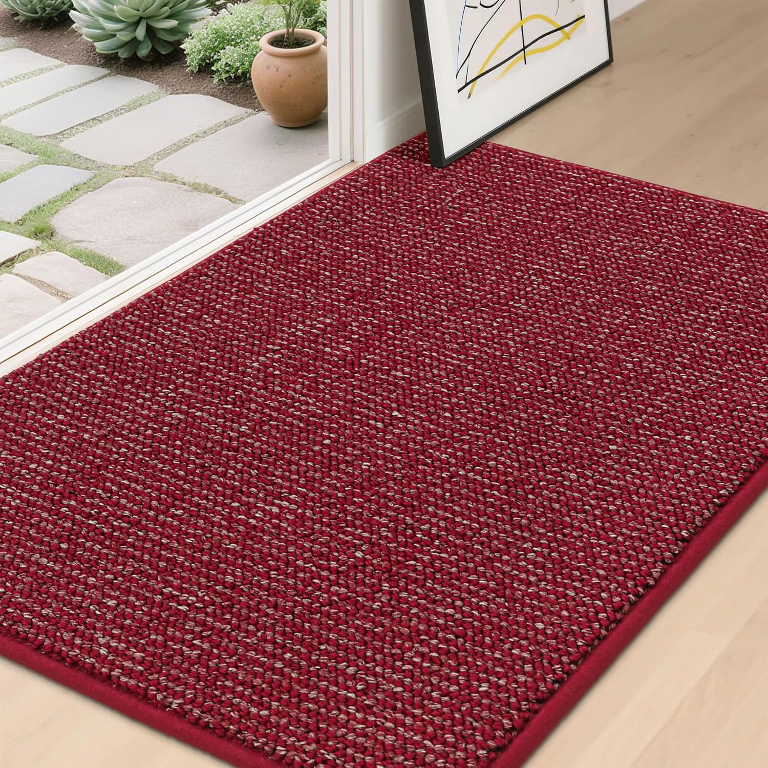 BEQHAUSE Dirt Trapper Door Mat 32" x 48", Non-Slip Washable Doormats Entrance Mat, Dirt Resistant and Absorbent Welcome Mat, Low Profile Floor Mats for Front Back Door and Entryway, Red