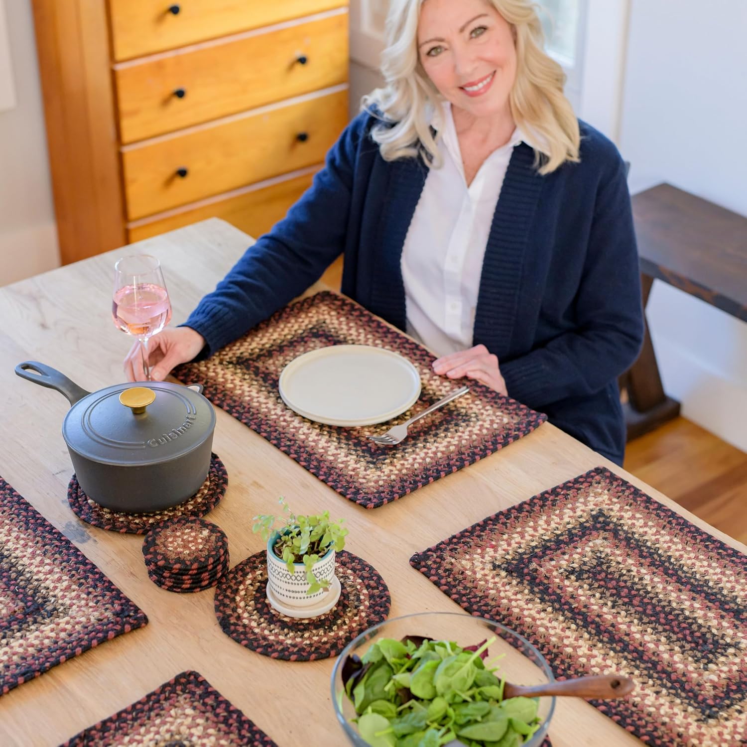 • PRIMITIVE PLACEMATS WITH A TOUCH OF TRADITION: The Prescott jute braided placemats are a perfect blend of tradition and style. The rustic placemats are mostly black and red, with hints of brown and off-white, making them a great fit for rooms with Americana or primitive country decor. The superior dyeing technology ensures uniformity and depth of color, especially in the black and red shades, giving them a beautiful shine.