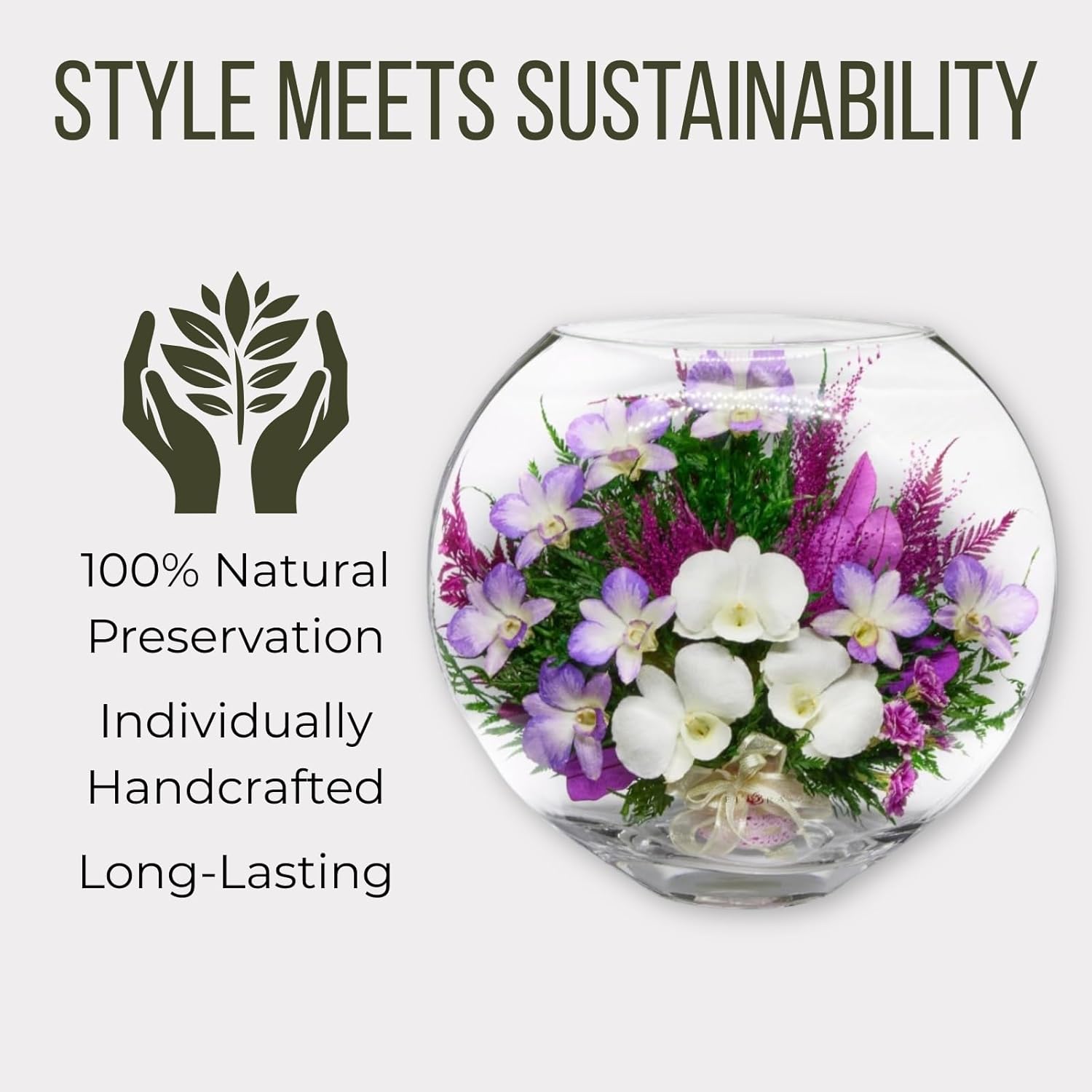 • Vacuum-sealed: The flowers are enclosed in a vacuum-sealed glass vase that keeps the flowers fresh and prevents them from withering or losing their petals. This technology ensures that the flowers stay beautiful for an extended period.