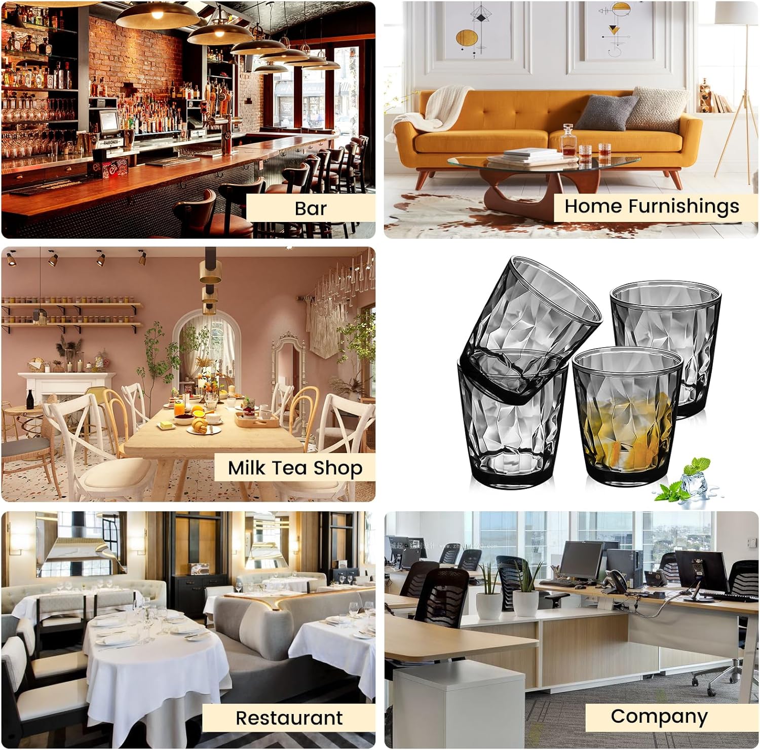 • 【High quality】: Our black glass cups are made of Acrylic, and our modern cold drink nonpareil resists thermal shock, breakage, chips and dishwasher wear with the look and feel of glass. Thick walls provide stability. No more broken glass with the thick, durable body of these plastic water glasses. Perfectly safe drinking cups that are cheaper than glass for most consumer groups.