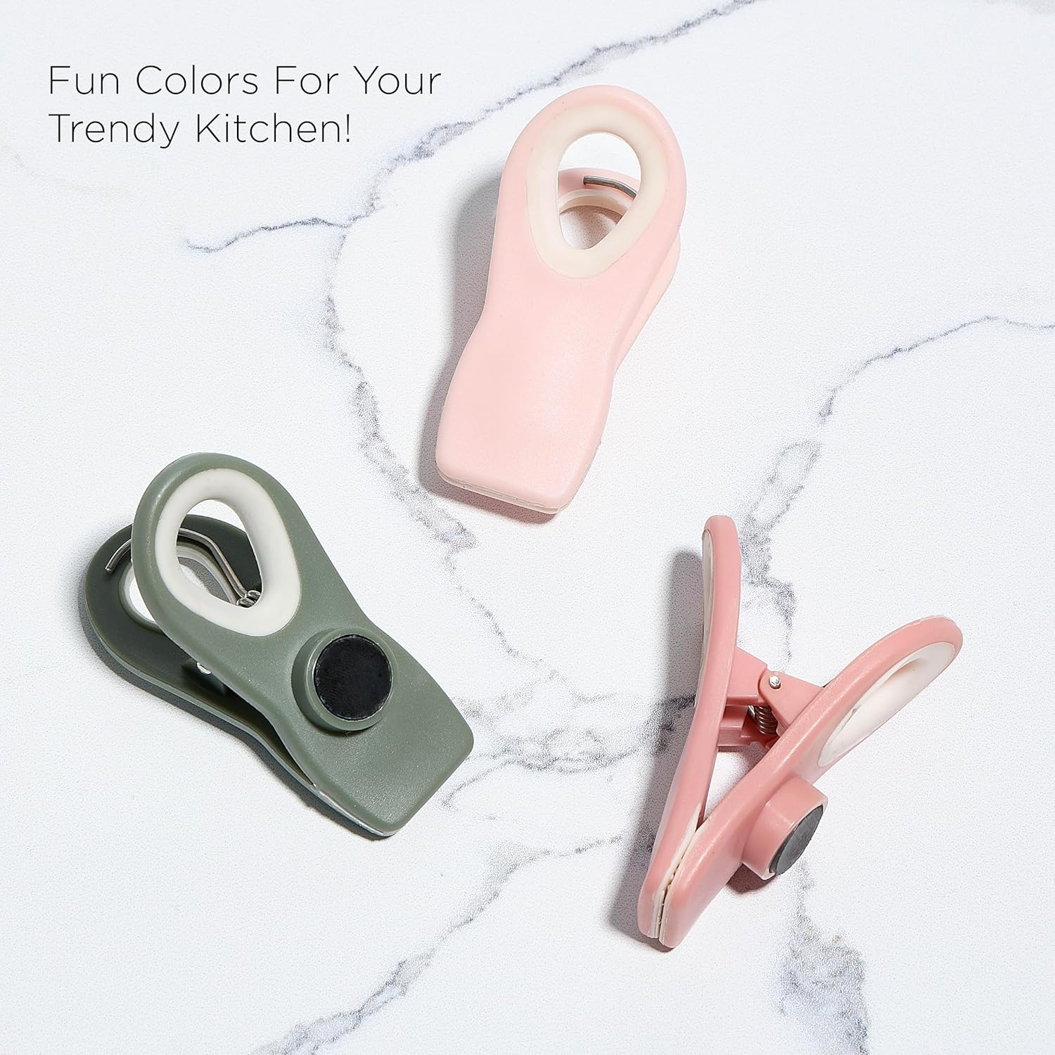COOK WITH COLOR Bag Clips with Magnet- Chip Clips, Food Storage with Airtight Seal Grip for Bread, Snack and Food Bags (Green and Pink, Pack of 10)