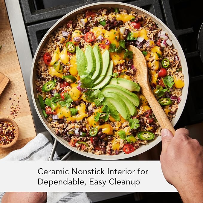 • EASY-CLEAN CERAMIC: High performance ceramic nonstick is made without PFAS, BPA, Lead, or Cadmium* for safe, consistent food release and fast, easy cleanup (*Manufacturing process does not involve adding to the product any of these substances which may otherwise be present in the environment)