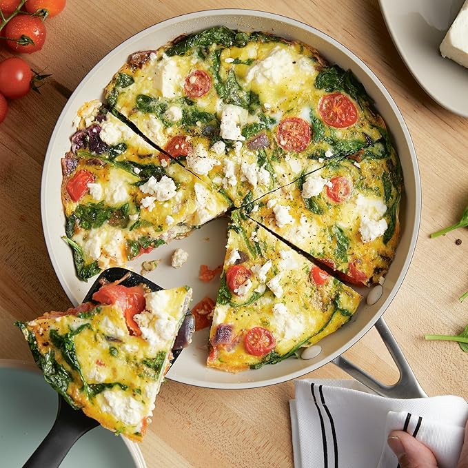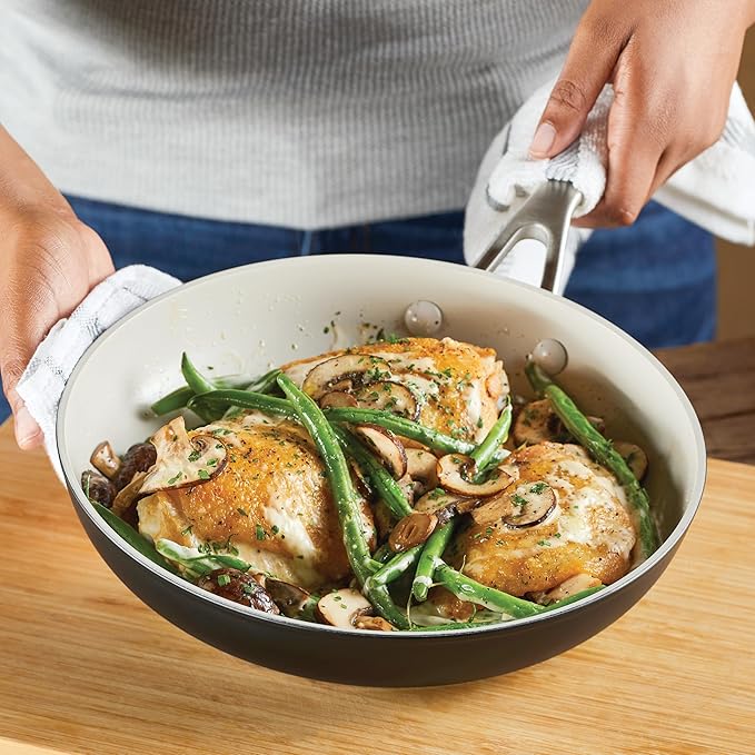 • EASY-CLEAN CERAMIC: High performance ceramic nonstick is made without PFAS, BPA, Lead, or Cadmium* for safe, consistent food release and fast, easy cleanup (*Manufacturing process does not involve adding to the product any of these substances which may otherwise be present in the environment)