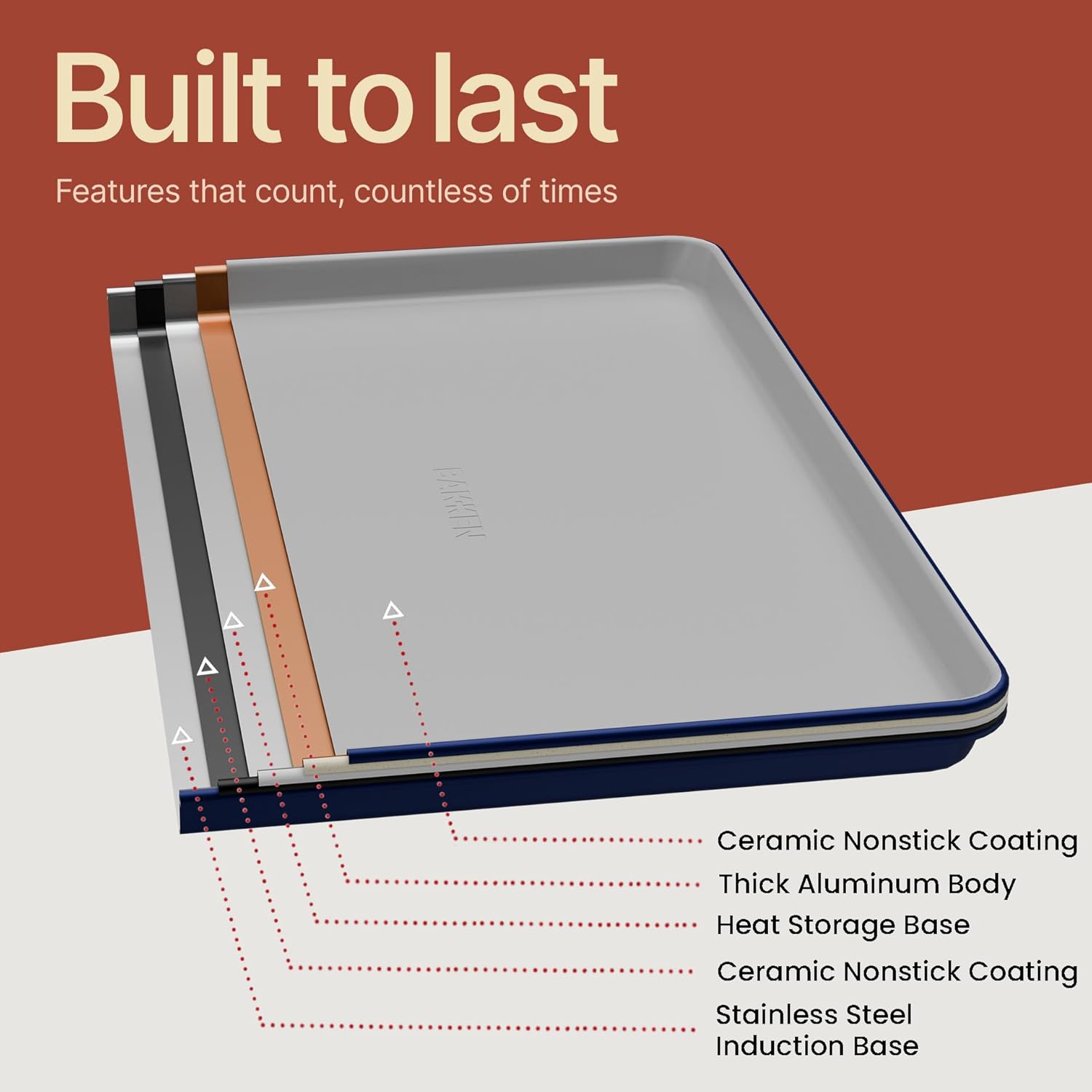 • DURABLE AND EVEN HEAT DISTRIBUTION: Crafted from high-gauge aluminized steel, this bakeware set offers durability and excellent heat distribution for consistent and delicious results every time.