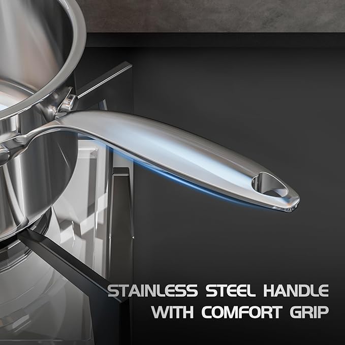 • 【Durable Construction, Long-lasting Quality】: Built to last, our stainless steel cookware set made with 3-ply stainless steel bodies is designed for durability and reliability. Invest in quality cookware that withstands daily use and retains its sleek appearance for years to come.
