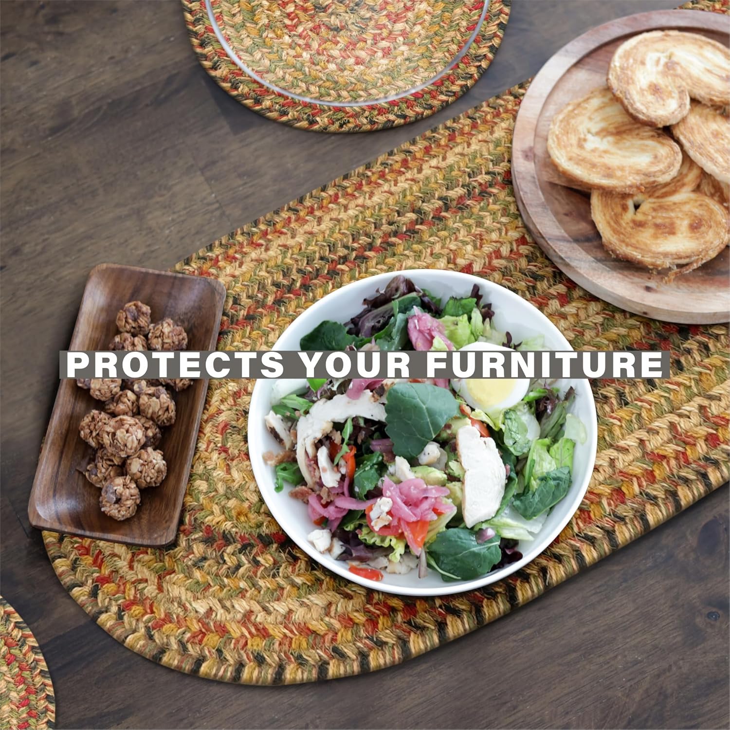 Homespice Kingston Premium Jute Braided Placemat Set of 4 Oval 10x15 Multi Color Reversible, Natural Jute Yarn Rustic, Country, Primitive, Farmhouse Style