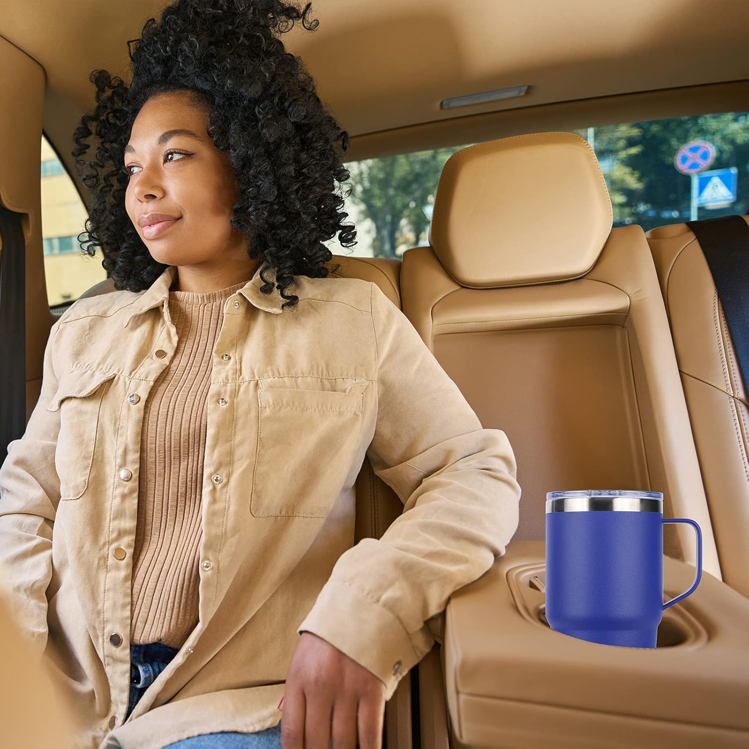 • Cupholder Friendly: The travel coffee tumbler 20oz is designed with a tapered shape which fits most car cup holders, equipped with a sturdy handle that allows easy carrying. Diameter 3.38" large cup mouth makes it easier for you to clean the stainless steel mug.
