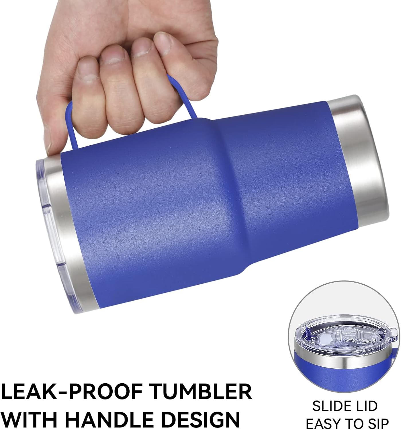 • Stainless Steel Tumblers with Handle: Made of 18/8 food grade stainless steel,it won't retain or transfer flavors with the electro polished inside and also sweat proof with colorful powder coating outside. 360-degree welded handle gives you a firm grip on your beverage.