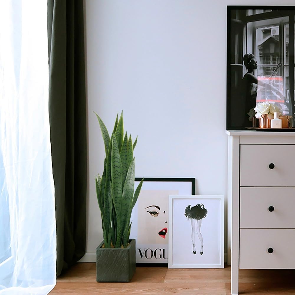 35" Lifelike Faux Snake Plant, Realistic Artificial Plants with 28 Thick PEVA Leaves, Indoor/Outdoor UV-Proof Greenery Decor, Patio, Office & Home Decor, Includes Black Pot & Preserved Moss