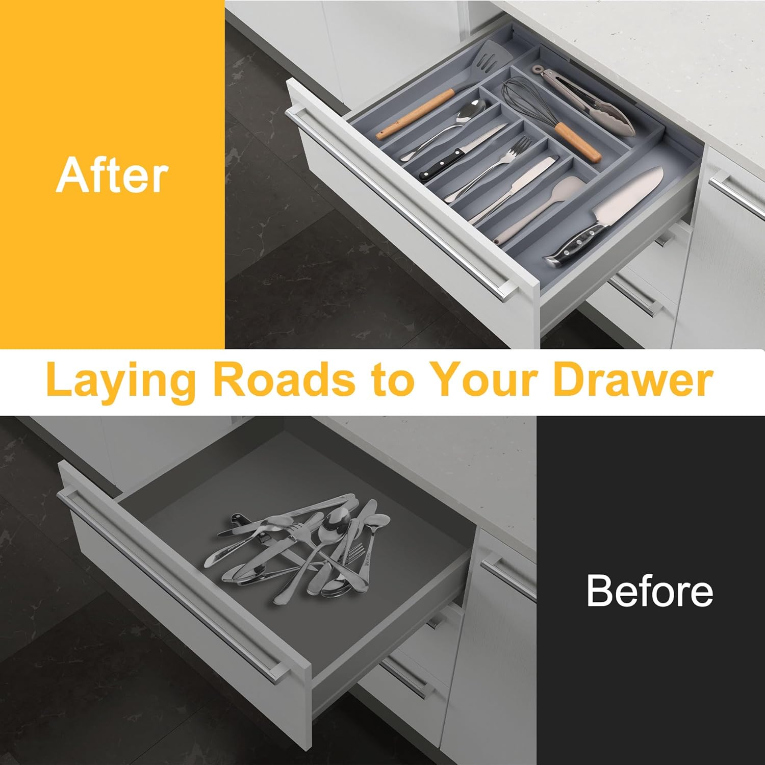 • ✅【Multi-purpose and Convenience】Not only is this the perfect solution for keeping your kitchen drawers neat and tidy, but this organizing tool is incredibly versatile for the office, dresser, makeup drawer and craft corner. Easily keep pencils, pens, markers, sticky notes, paper clips and other office supplies in one place for easy grabbing. Neatly place jewelry, makeup brushes, and even paints, brushes and other art supplies, all-in-one organizing solution!