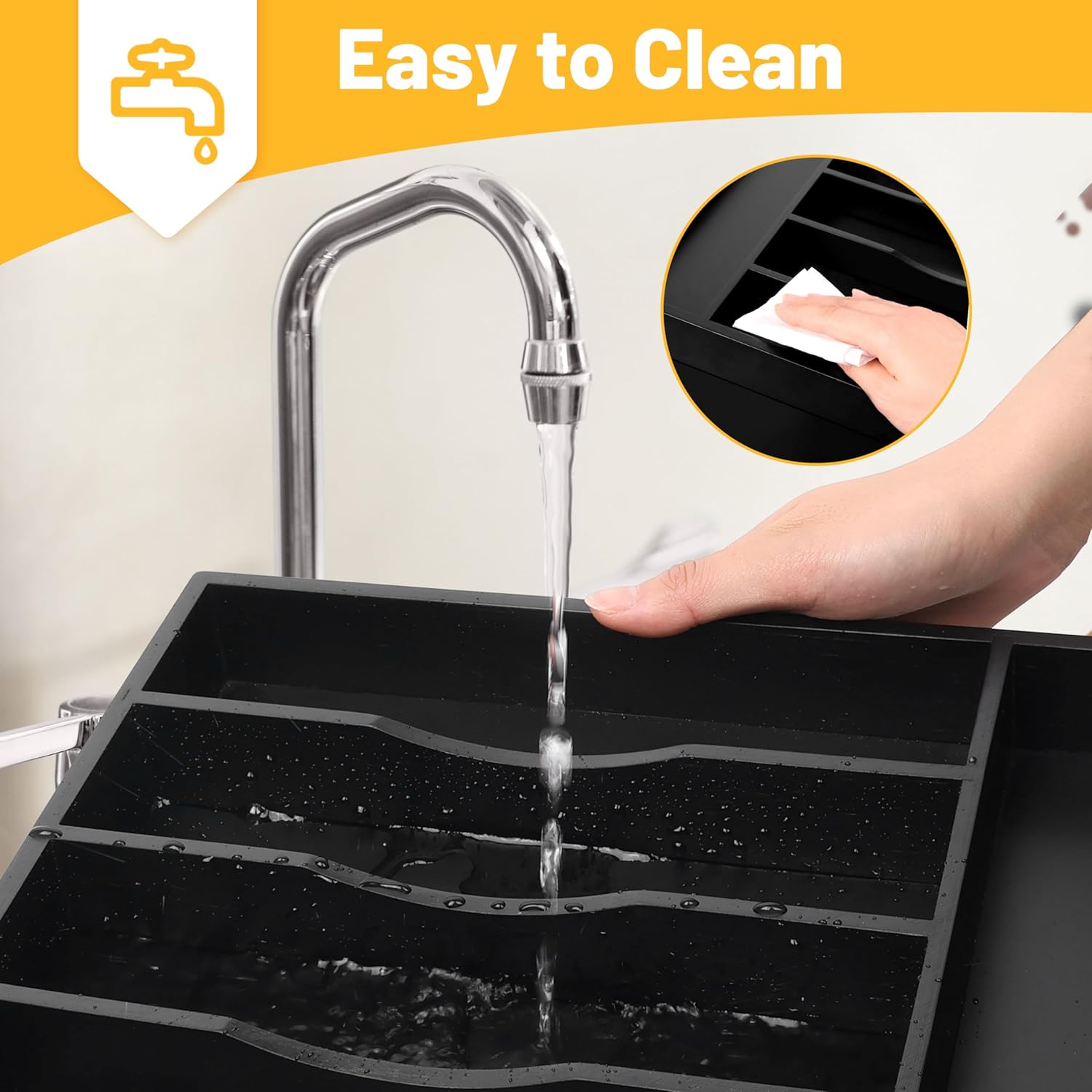 • ✅【Multifunctional Design For Your Needs】Our multi-purpose cutlery organizer is not only suitable for storing silverware, but also with large capacity & deep grooved edges, the storage tray can also be used to organize your office, bathroom sink drawer, dresser, & craft corner, being perfect to sort pencils, pens, grooming supplies, makeup brushes and lipsticks, or art supplies like paintbrushes and charcoal.