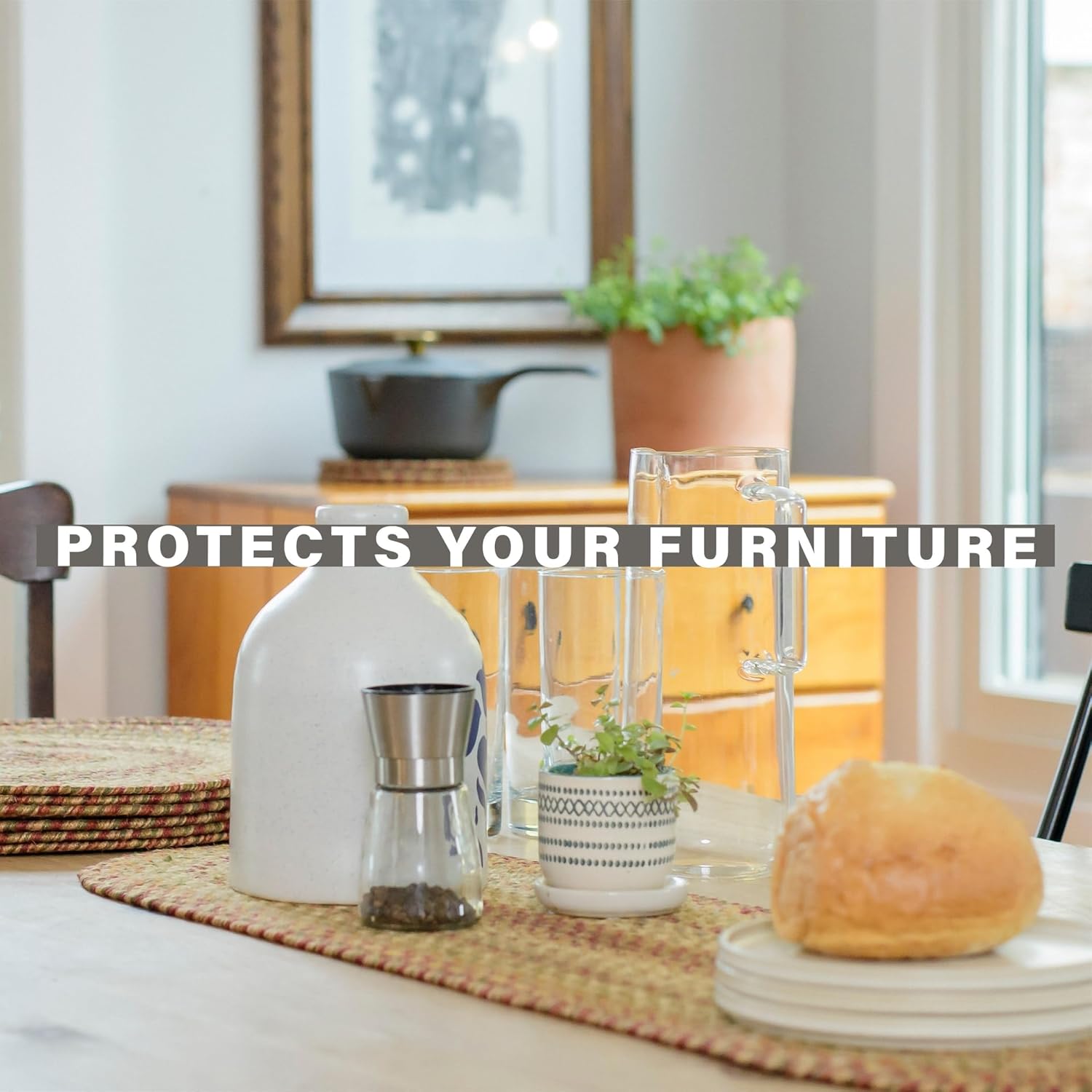 • EXTRA BENEFIT OF OUR JUTE TABLE PLACEMATS: LAYS FLAT: Crafted for a smooth, uncurled surface, this table placemats stays perfectly flat. TIGHT STITCHING: Made with strong jute yarn and tight stitching. RICH COLORS: Dyed with high-quality colors specifically designed for country decor. PROTECTS TABLE: Protection from heat and spills. REVERSIBLE: Flip it over for a clean side if needed.