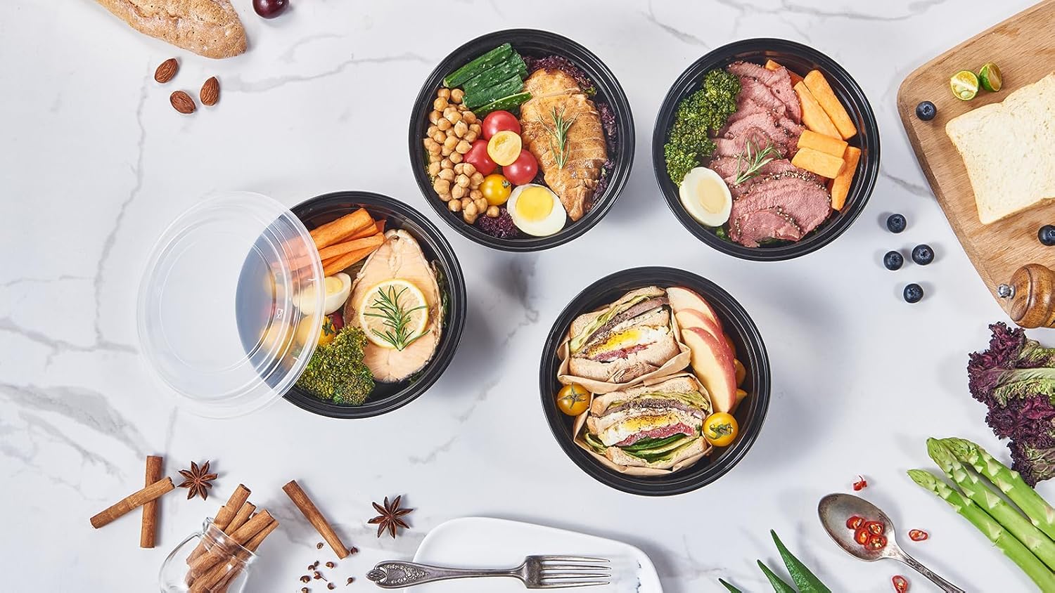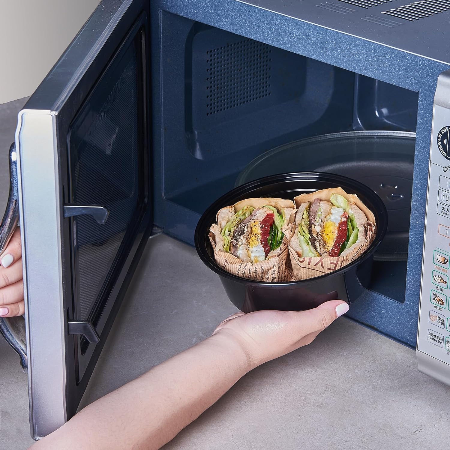 • MEAL-PREP MADE EASY: Black Salad bowls Deli Food Storage Containers with Clear Airtight Lids Leak Resistant, stack neatly, and feature a microwaveable bottom to make meal planning a breeze
