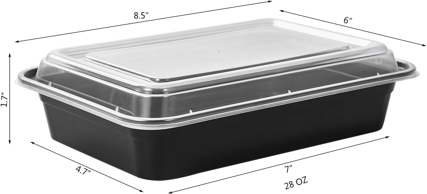 FULING 150 Pack Meal Prep Plastic Food Storage Containers With Lids 28 oz 1 Compartment Black Rectangular Reusable To Go Lunch Prepping Boxes BPA-Free Microwavable Freezer Dishwasher Safe Stackable
