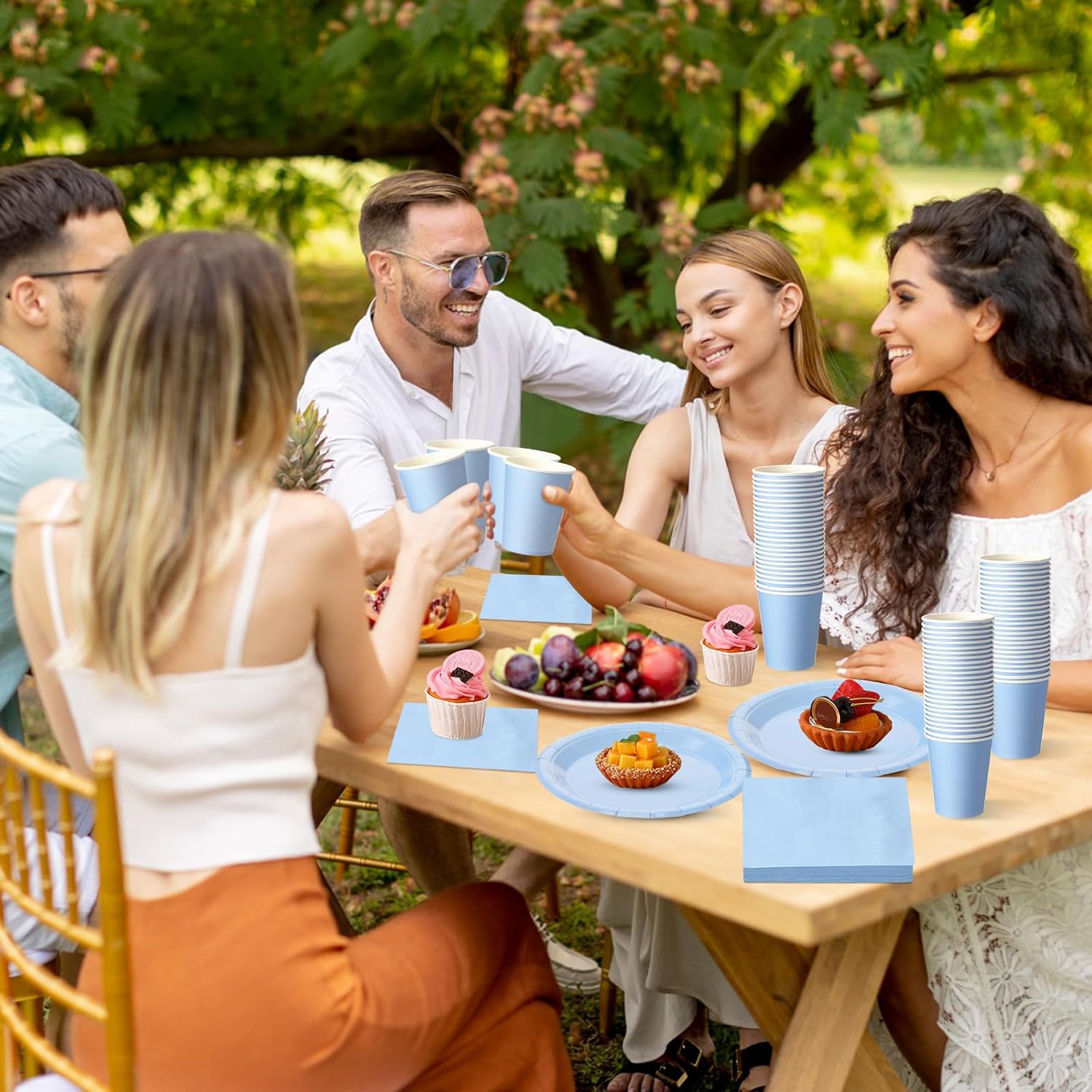 • Maximum Guest Servicing Capability: with the ability to simultaneously cater to 50 guests, the baby blue plates and cups and napkins sets relieve you of the stress of staggering catering, whether it's a small gathering, a large party, or even a conference, providing service to a multitude of guests at once