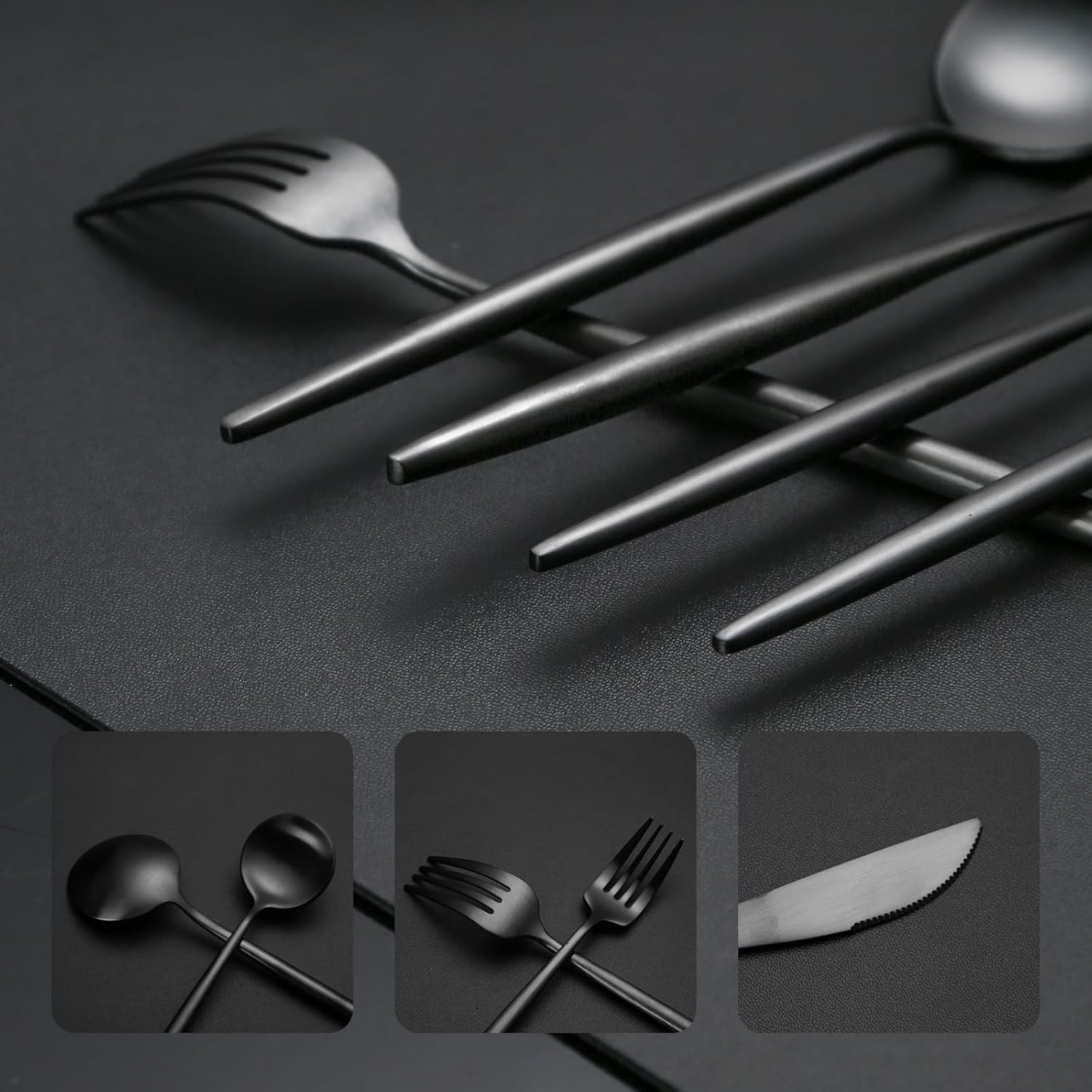 40 Pieces Matte Black Silverware Set, Stainless Steel Black Flatware Set for 8, Satin Finish Spoons and Forks Silverware Set, Black Cutlery Utensils Set, Dishwasher Safe