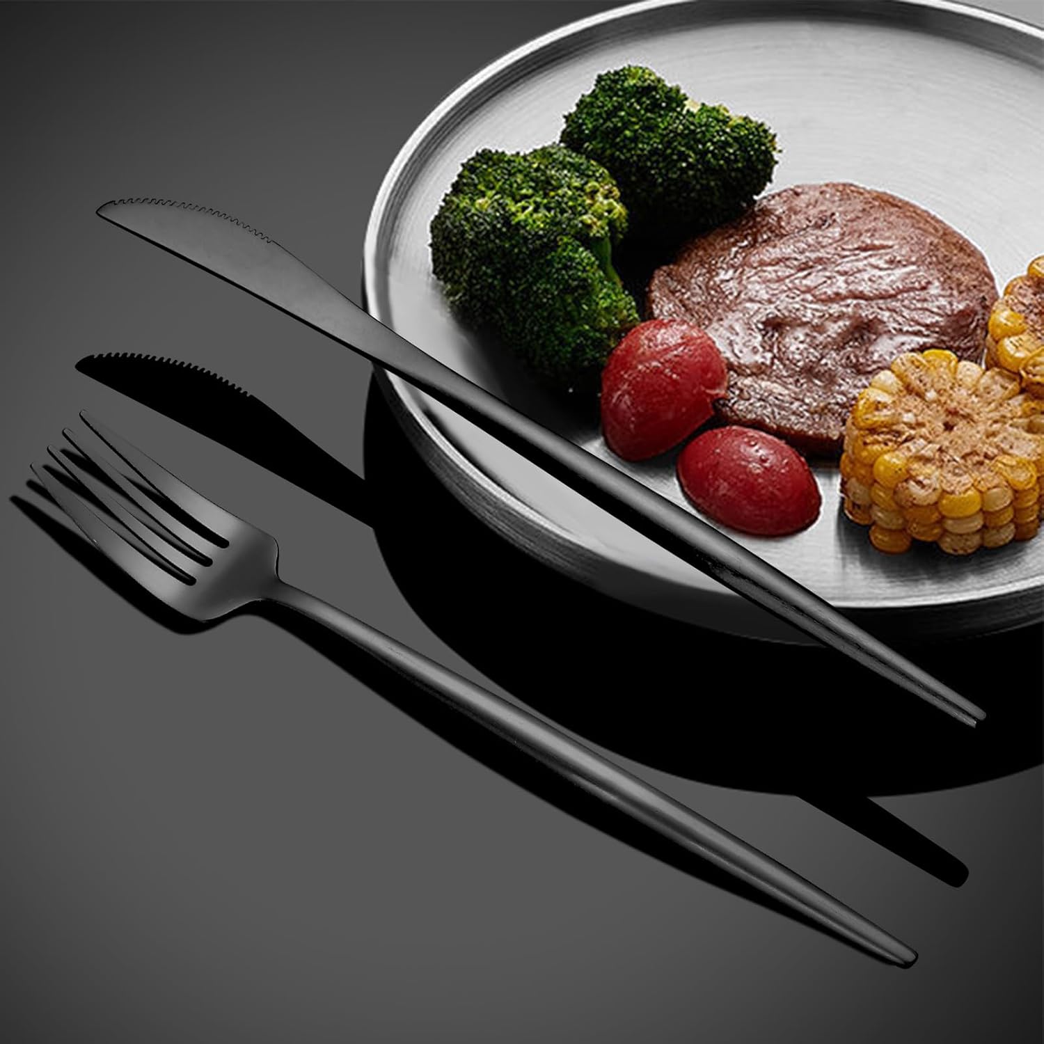 • 【ORNATE AND SLEEK DESIGN】🍴 TUPMFG matte black silverware has a classic round head and silhouette with clean lines handle design, it’s extremely gorgeous in appearance, highly texture tones & eye-catching looking makes this set standing out from the ordinary silverware. These kitchen cutlery set is perfect for hosting dinners and gatherings, also as a practicality and sophistication gift.