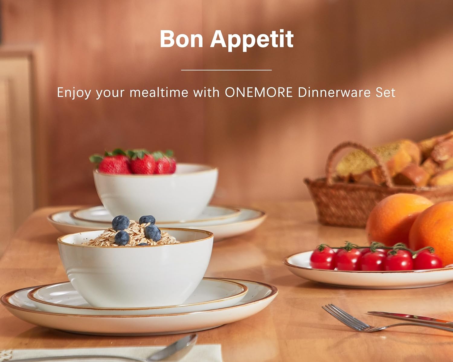 • Care Instructions: ONEMORE dinnerware sets are scratch resistant and easy to clean, all plates and bowls are microwave and dishwasher safe. They can be used repeatedly for a long time. Give these practical and exquisite ceramic dinnerware sets to your family and friends, you will receive lots of compliments