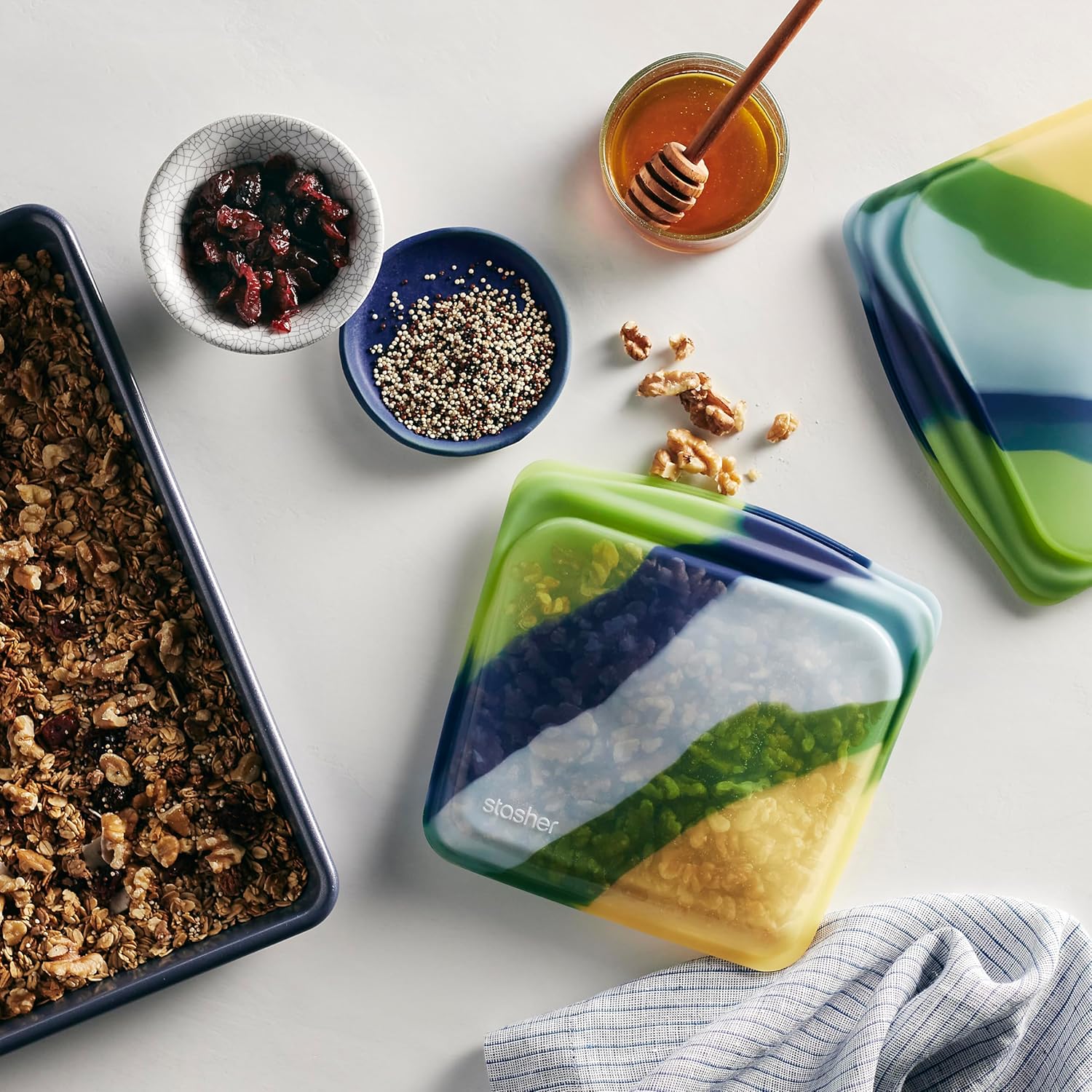 • REUSABLE, REWASHABLE CONTAINERS: Stasher silicone reusable storage bags make it easy to ditch single-use plastic and meet endless household needs. Safe for the dishwasher, microwave, oven (up to 425°F), and more.