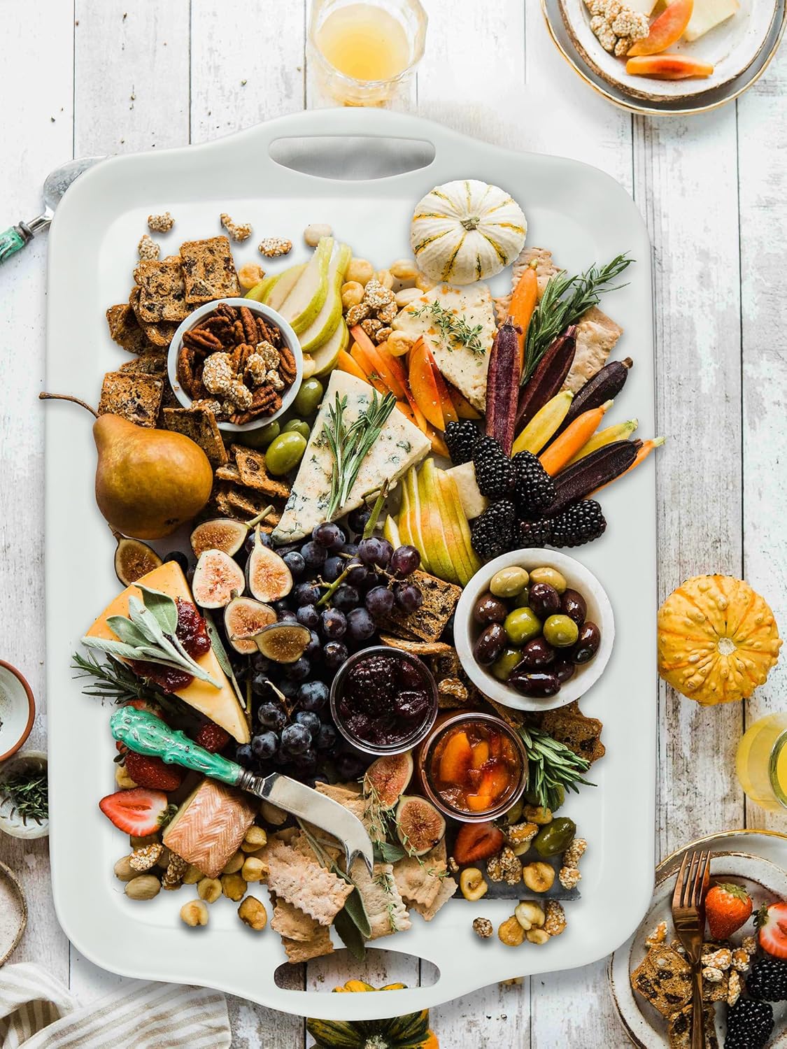 • 20-INCH LARGE SERVING TRAYS: with a dimension of 20’’ x 13’’ x 1.2’’, it almost serves for all-purpose when you use this platter, which has enough room for whole chicken or turkey; and definitely can be used it as a food tray to serve more dessert, fruits at big family gathering or entertaining