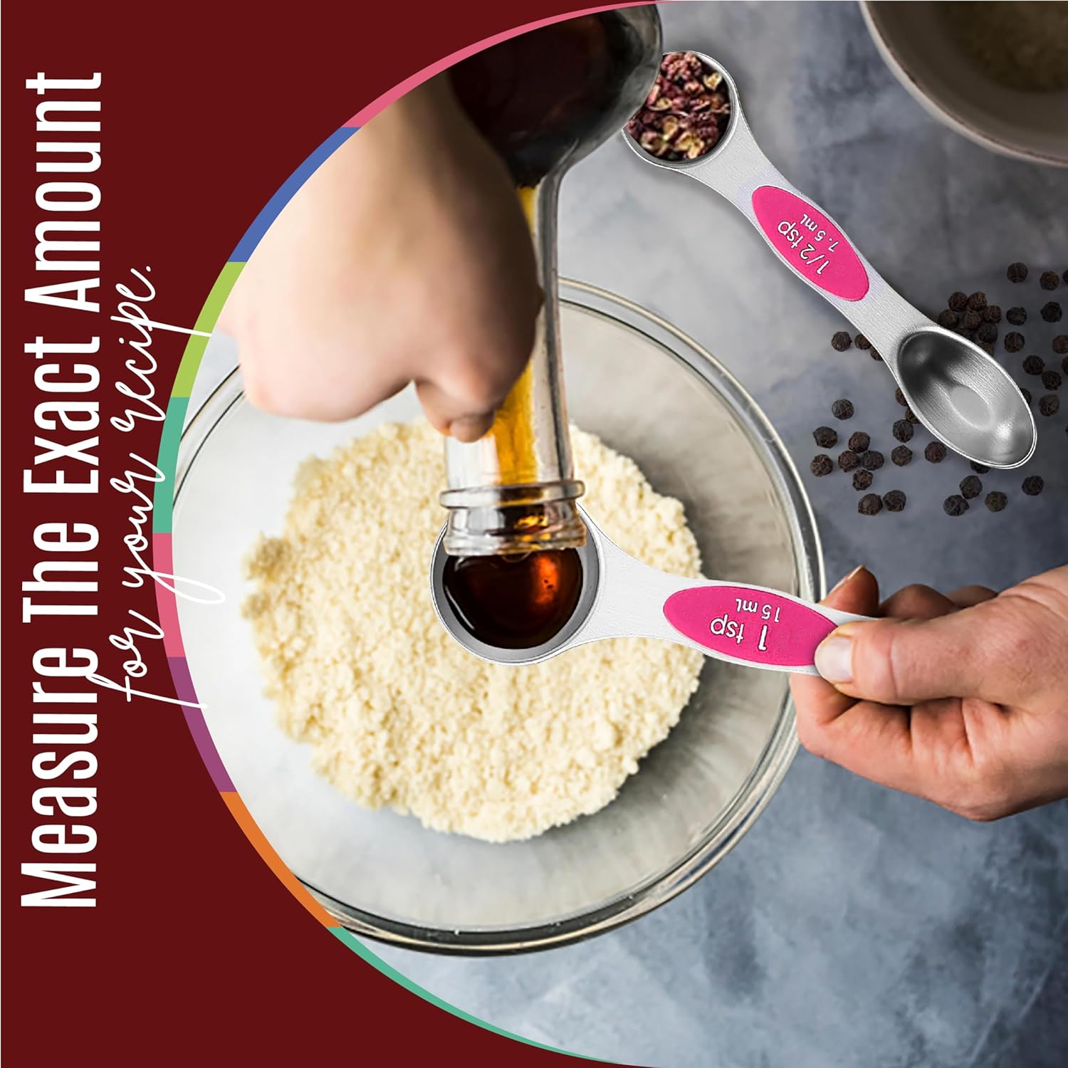 • Premium Quality: Our measuring spoons are made from high-quality 304 stainless steel, which is durable, rust-proof, and easy to clean. The dual-sided design allows you to measure both dry and liquid ingredients with ease.