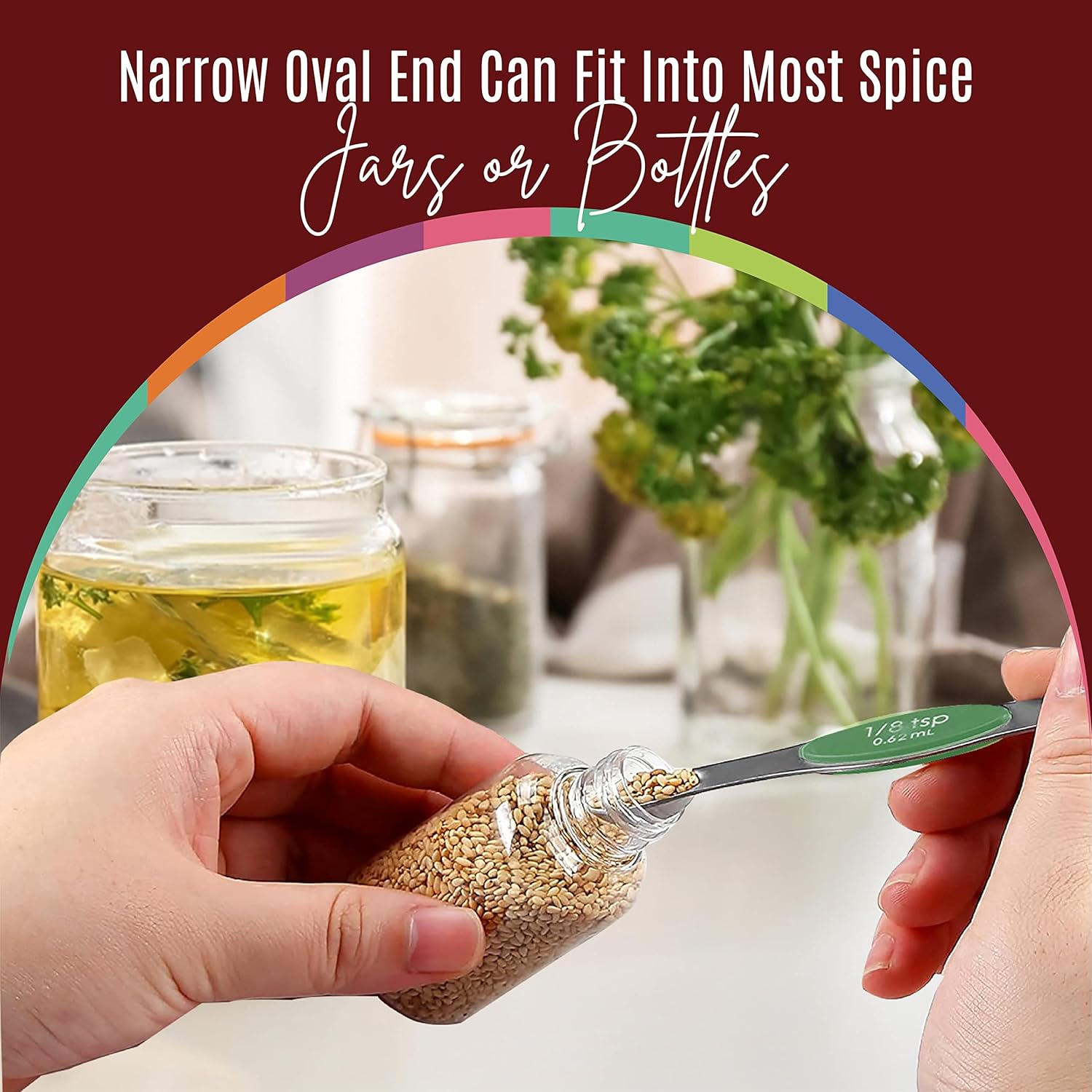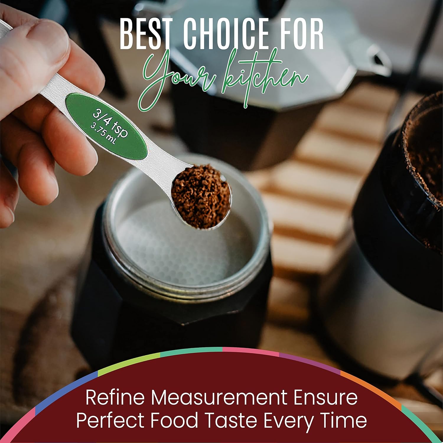 • Premium Quality: Our measuring spoons are made from high-quality 304 stainless steel, which is durable, rust-proof, and easy to clean. The dual-sided design allows you to measure both dry and liquid ingredients with ease.