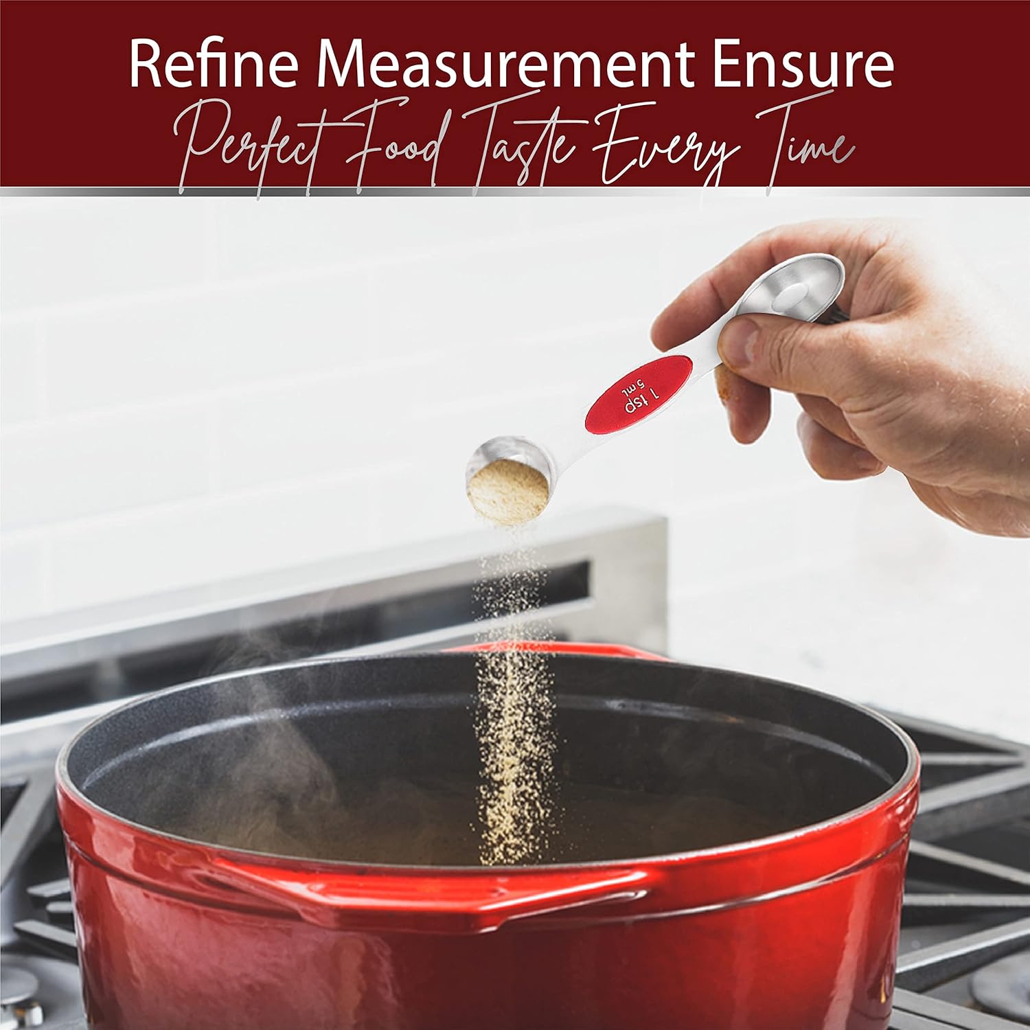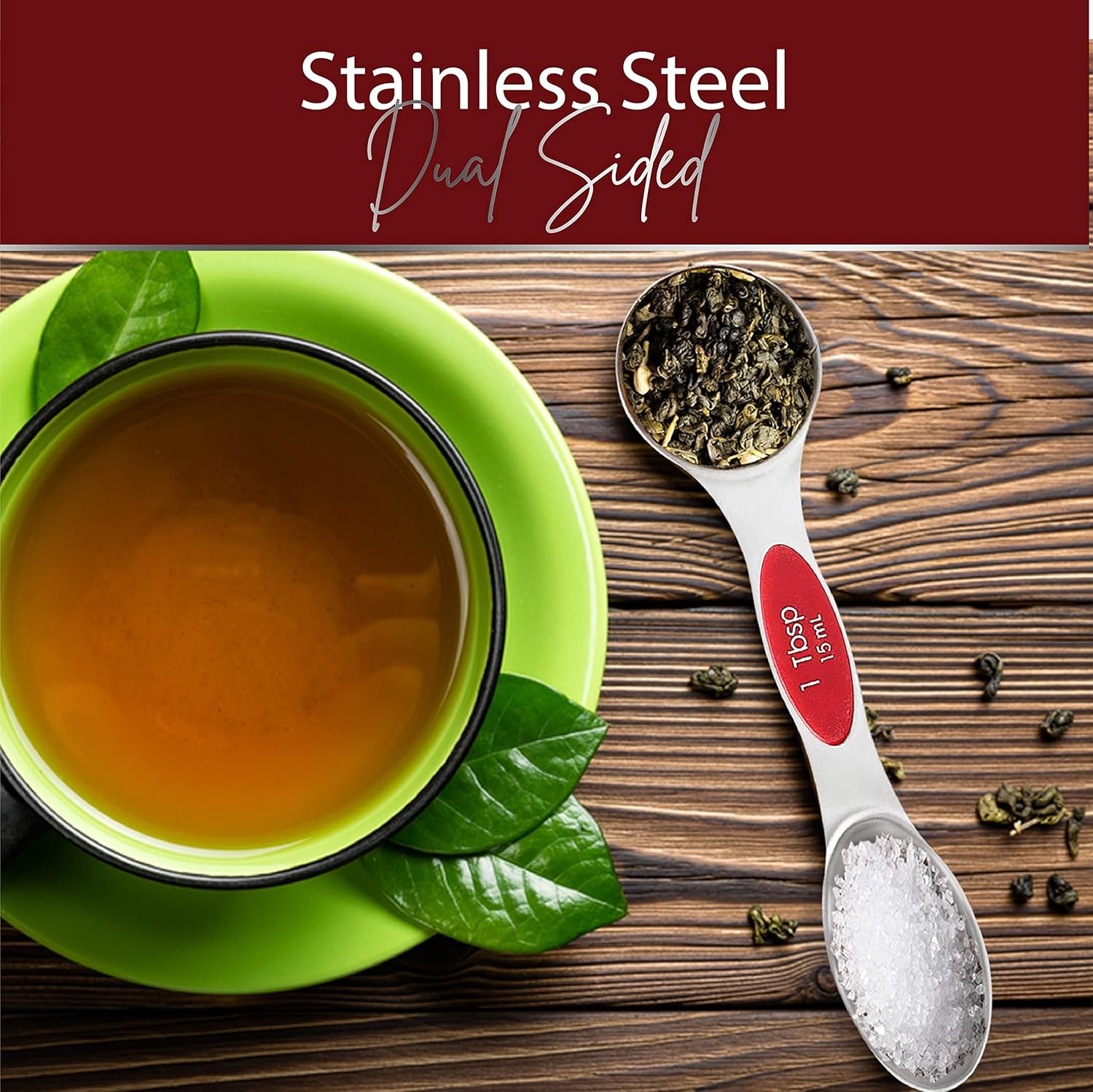 • Premium Quality: Our measuring spoons are made from high-quality 304 stainless steel, which is durable, rust-proof, and easy to clean. The dual-sided design allows you to measure both dry and liquid ingredients with ease.