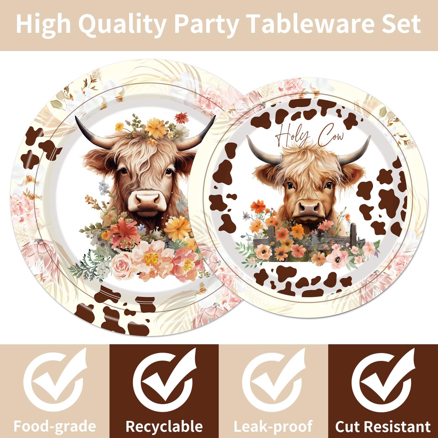 • Highland Cow Theme Design - The party tableware set features a Highland Cow theme combined with Pampas grass design. The plates and napkins are adorned with adorable highland cows and floral patterns. Highlight your party style, add to the party atmosphere.