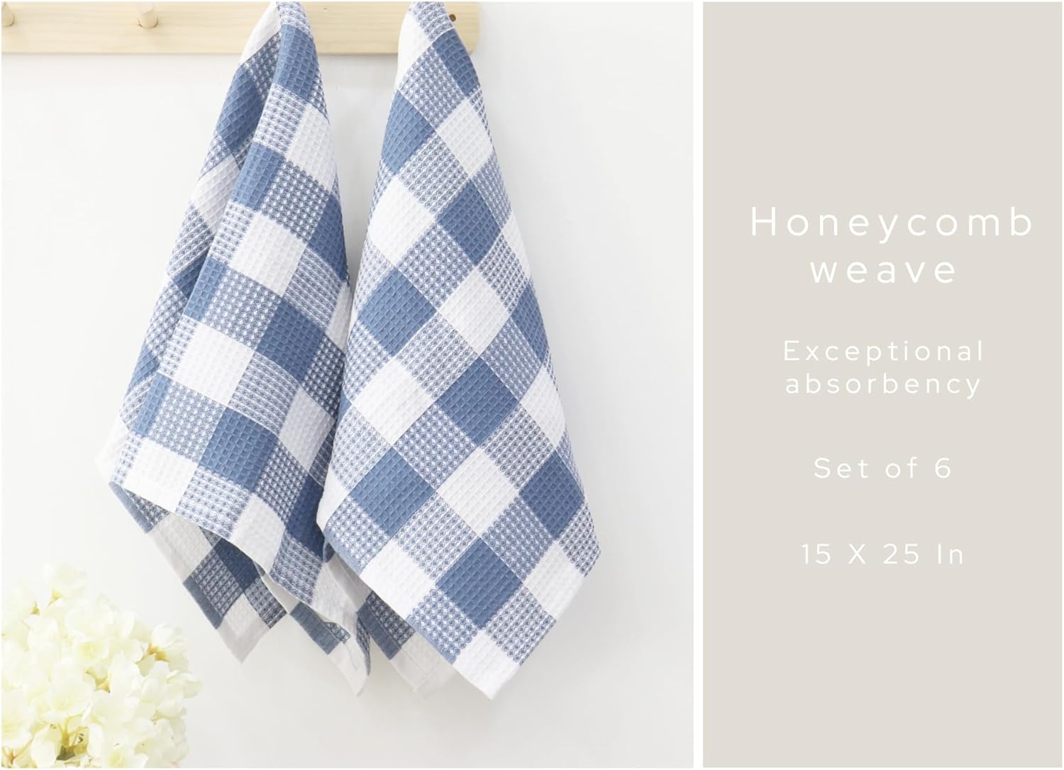 PurpleEssences 100% Cotton Waffle Weave Check Plaid Kitchen Towels, Super Soft and Absorbent Dish Towels for Drying Dishes 15 x 25-6 Pack - Fall Thanksgiving- Smoky Grey and White